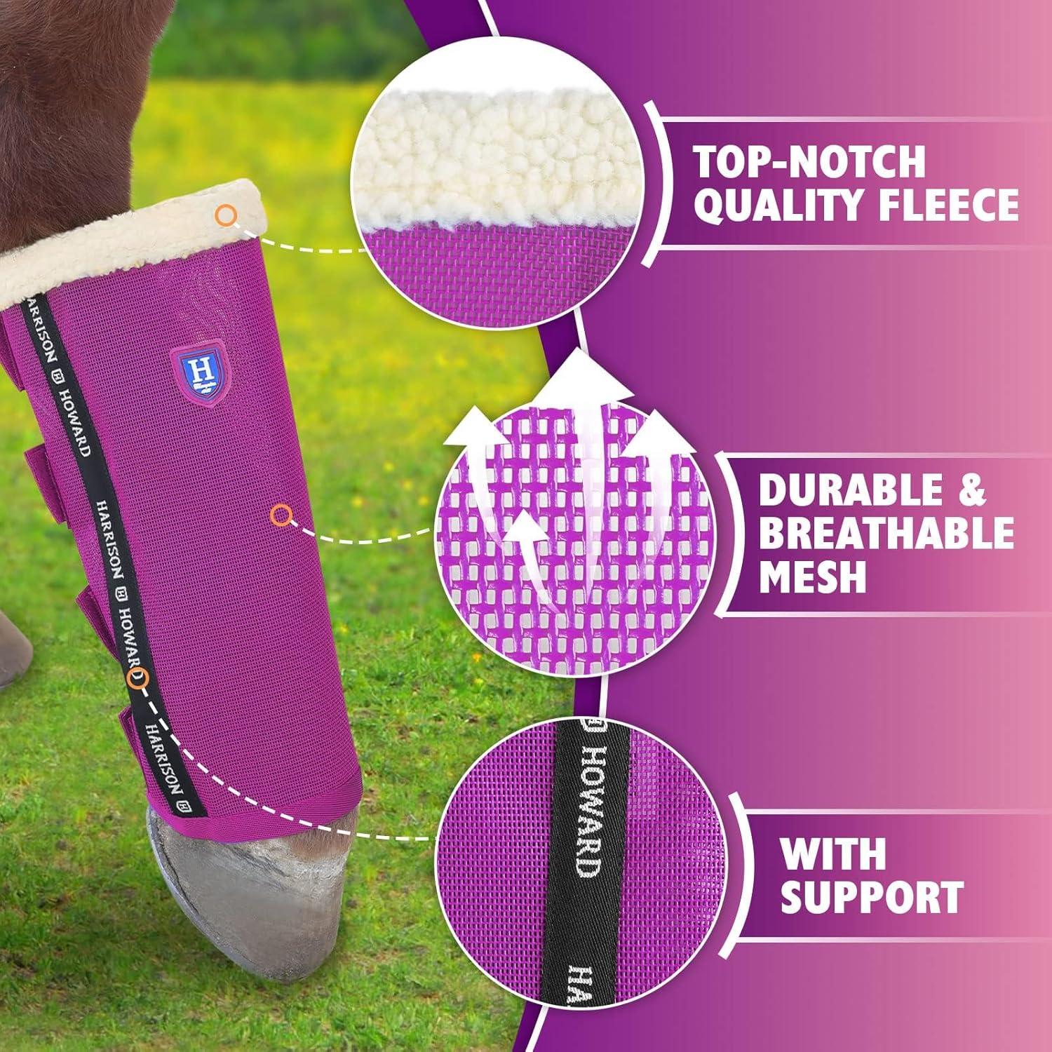 Harrison Howard Loose-Fitting Horse Fly Boots UV-Protective, Breathable, Tear-Resistant Fine Mesh Leggins Stay-on Comfortable Fly Boots with Ultra-Soft Wool Trim (Set of 4) Original Grey Cob (Medium)(Purple)