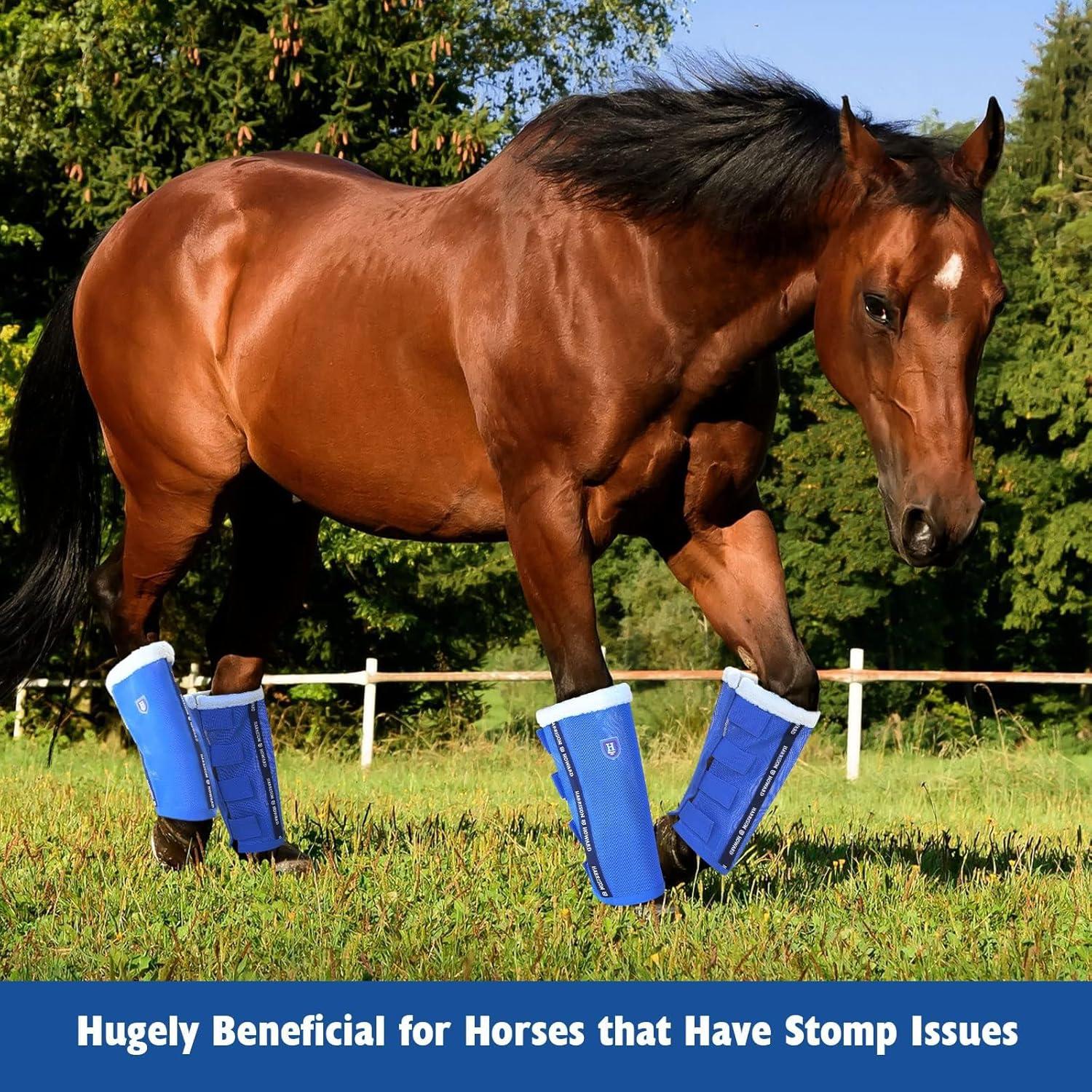 Harrison Howard Loose-Fitting Horse Fly Leggings Breathable, Tear-Resistant Fine Mesh Leg Guards Stay-on Comfortable Fly Boots (Set of 4) Blue Pony(Blue)