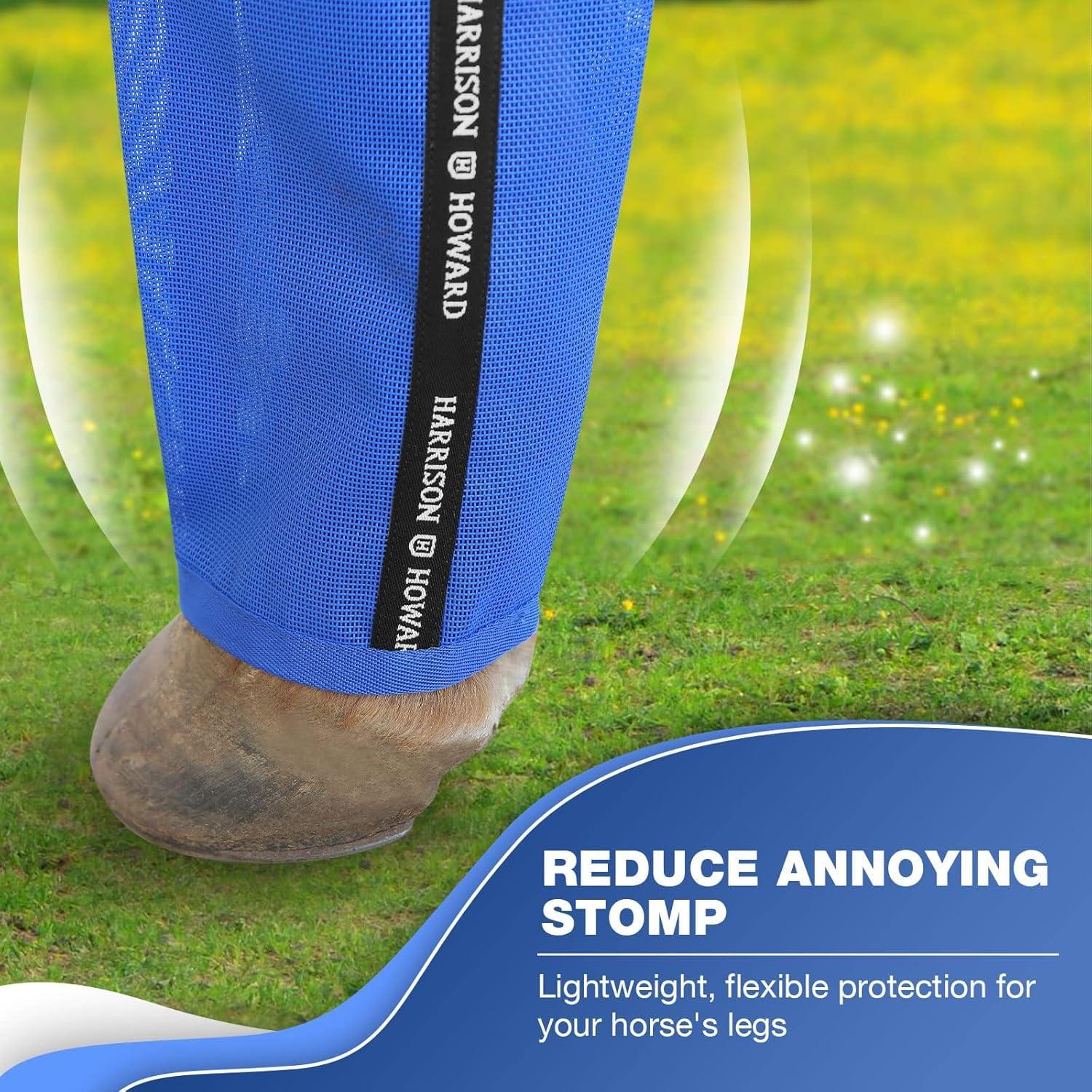 Fine Mesh Fly Boots Loose Fitting & Non-Slip Horse Fly Leggings No More Horsefly Nuisance Greatly Reduce Stomping Breathable with Natural Air Flow (Set of 4)(Blue)