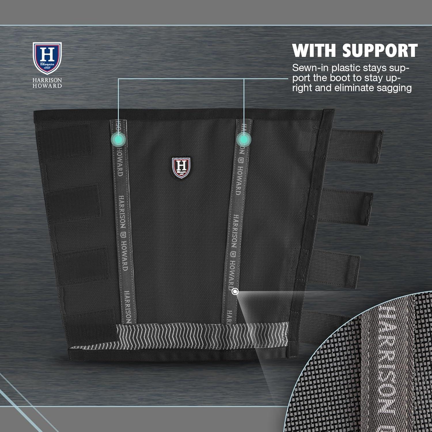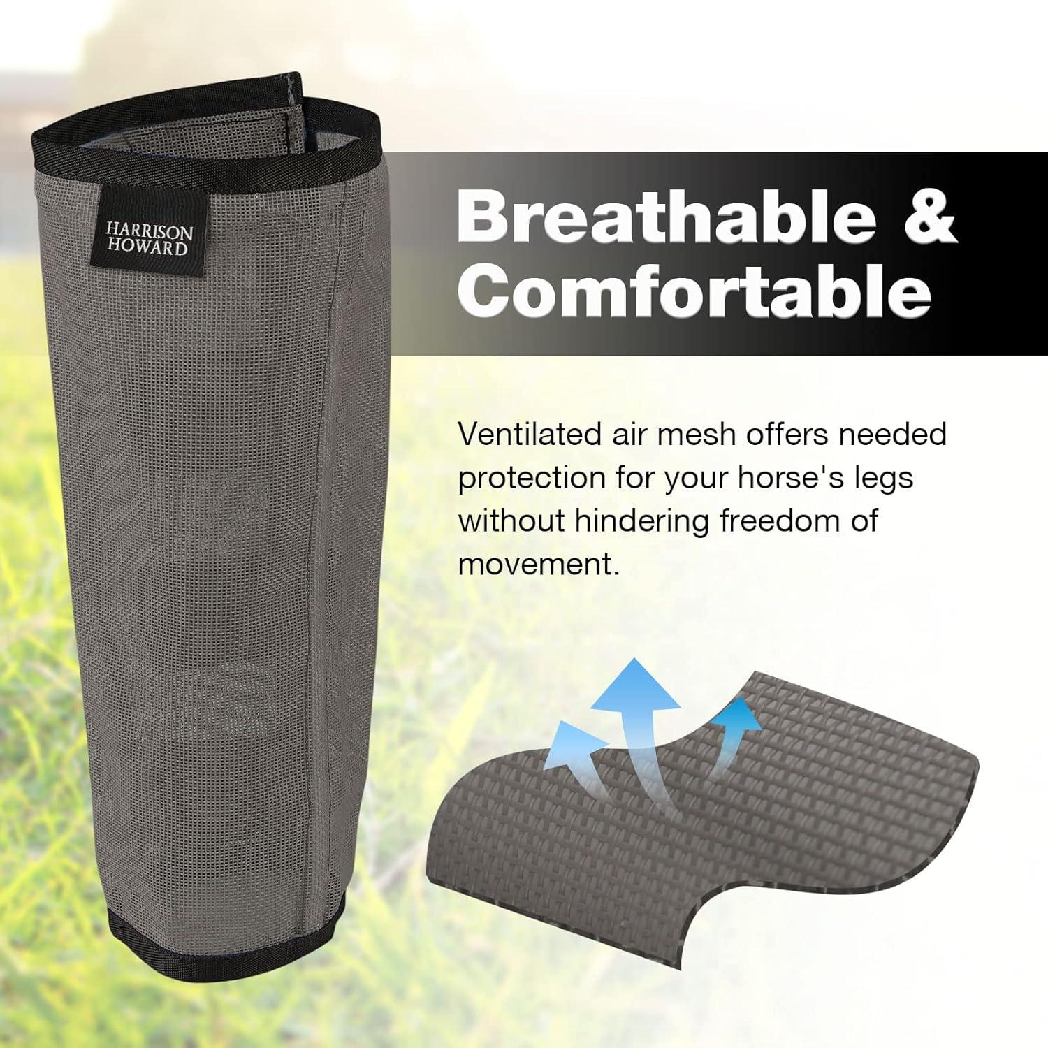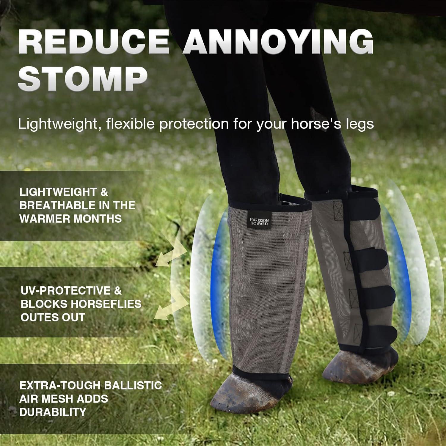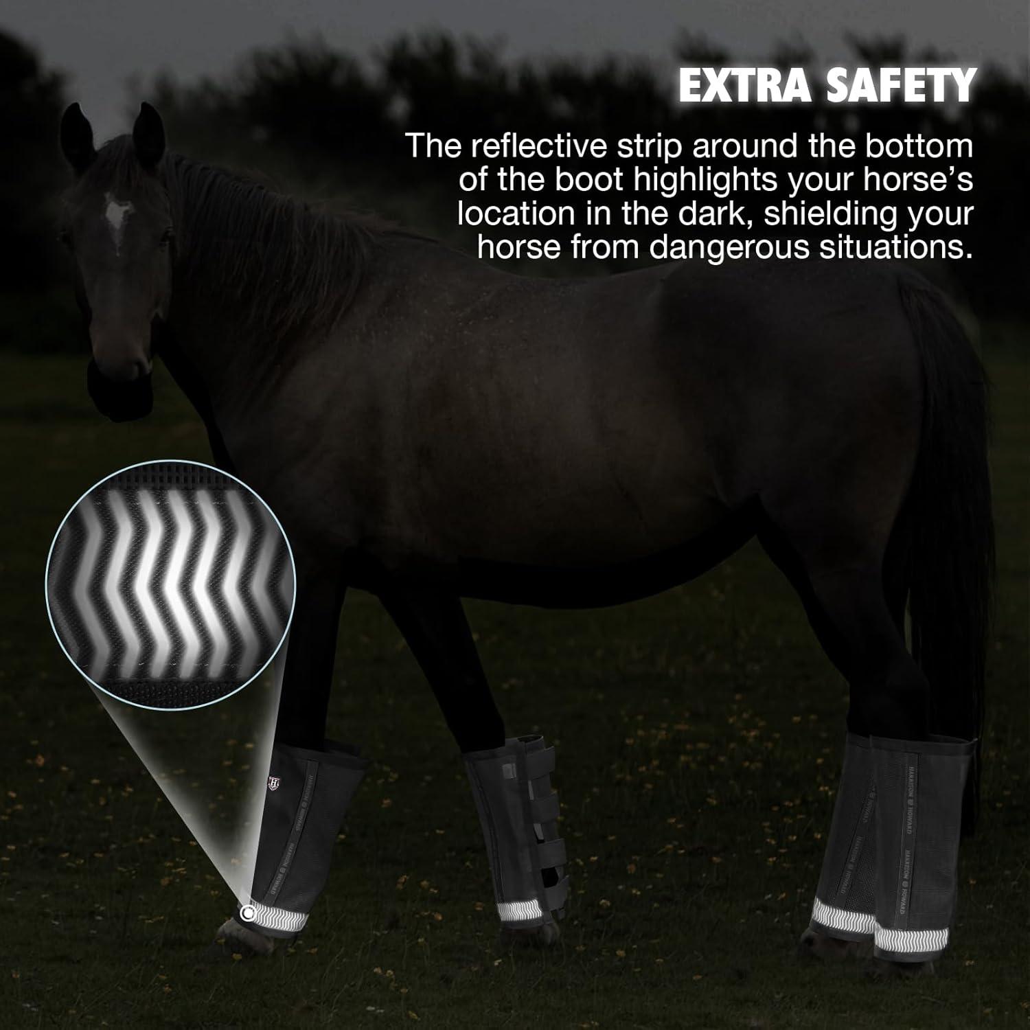 Harrison Howard Loose-Fitting Horse Fly Boots UV-Protective, Durable Fine Mesh Leggins with Reflective Strips (Set of 4)(Black)