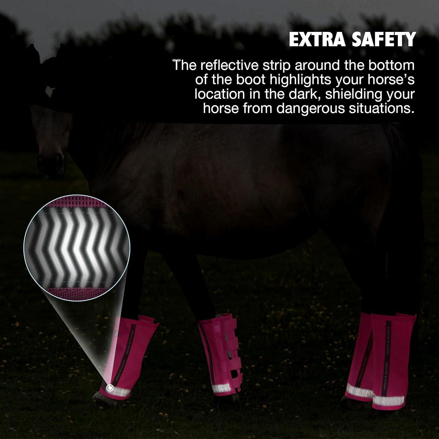 Harrison Howard Loose-Fitting Horse Fly Boots UV-Protective, Durable Fine Mesh Leggins with Reflective Strips (Set of 4)(Magenta)