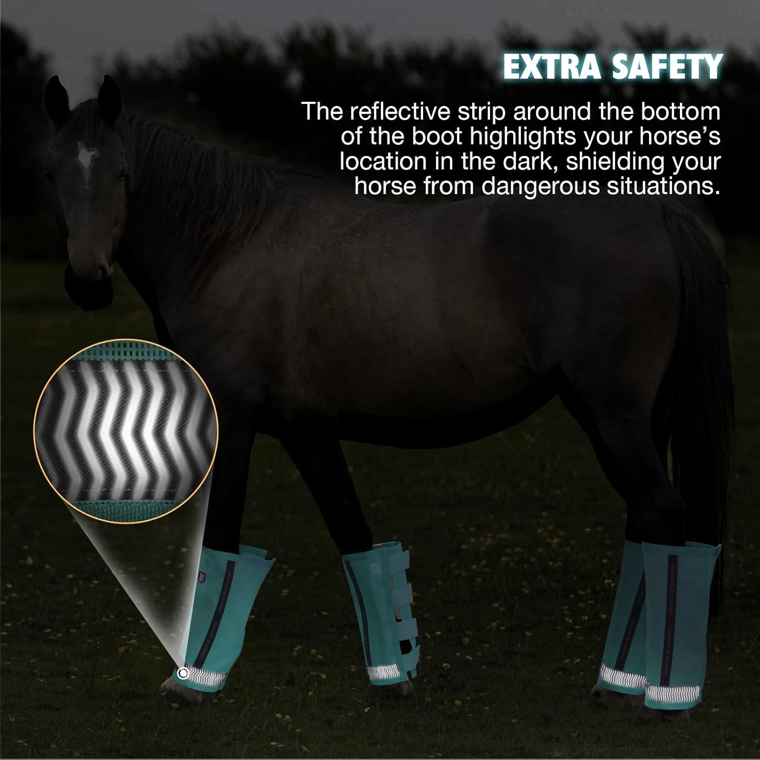 Harrison Howard Loose-Fitting Horse Fly Boots UV-Protective, Durable Fine Mesh Leggins with Reflective Strips (Set of 4)(Mint)