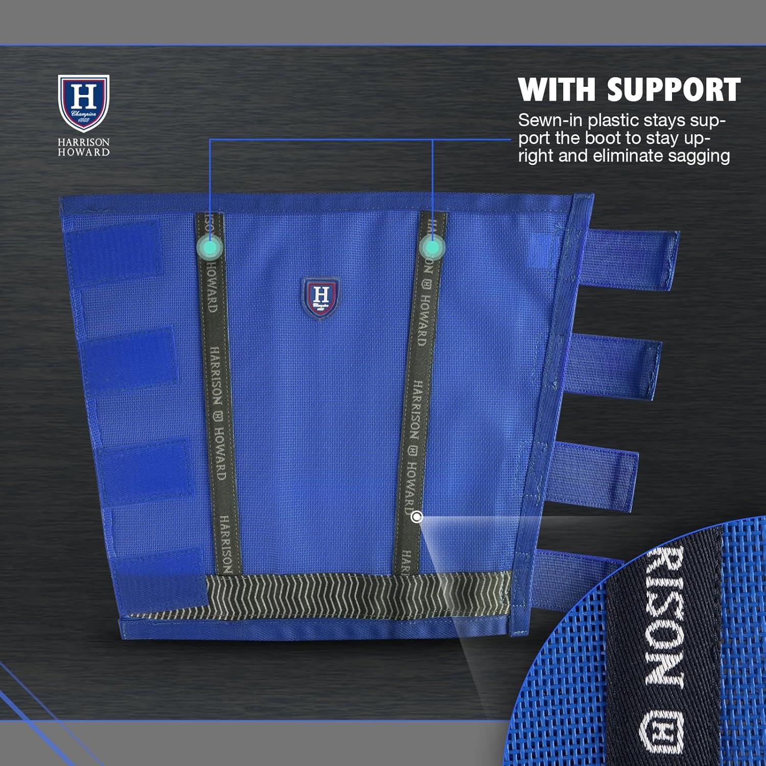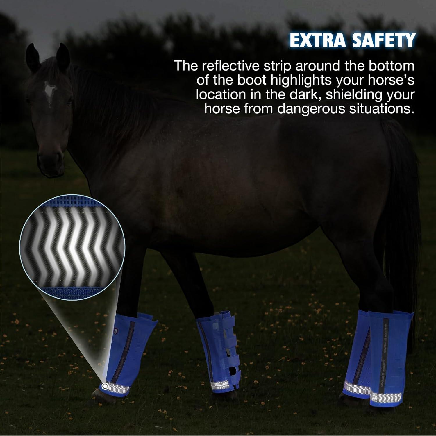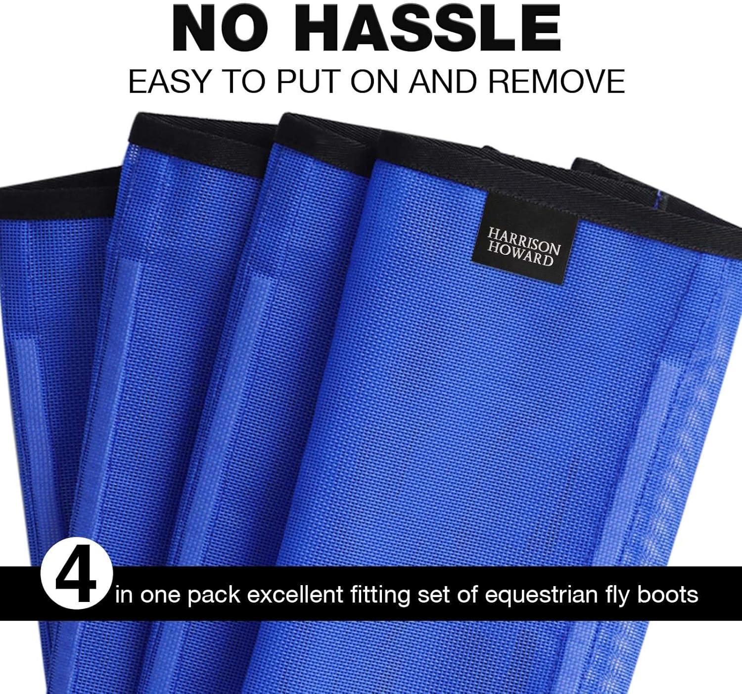 Harrison Howard Loose-Fitting Horse Fly Boots UV-Protective, Durable Fine Mesh Leggins with Reflective Strips (Set of 4)(Signature Blue)