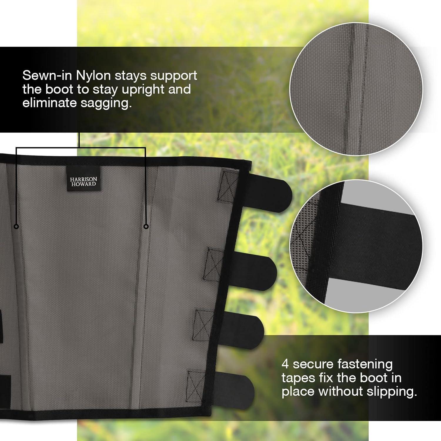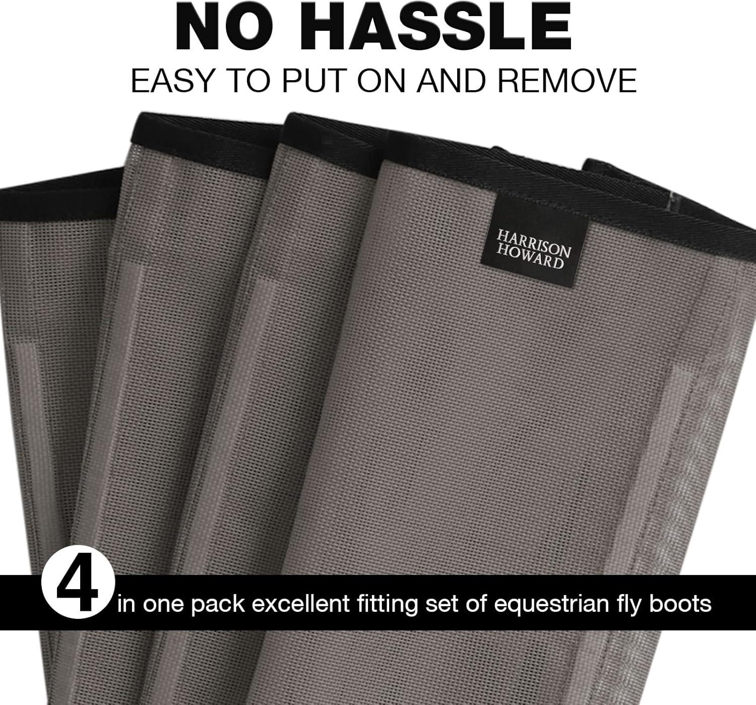 Harrison Howard Loose-Fitting Horse Fly Boots UV-Protective, Breathable, Tear-Resistant Fine Mesh Leggins Stay-on Comfortable Fly Boots with Ultra-Soft Wool Trim (Set of 4) Original Grey Cob (Medium)(Original Grey)