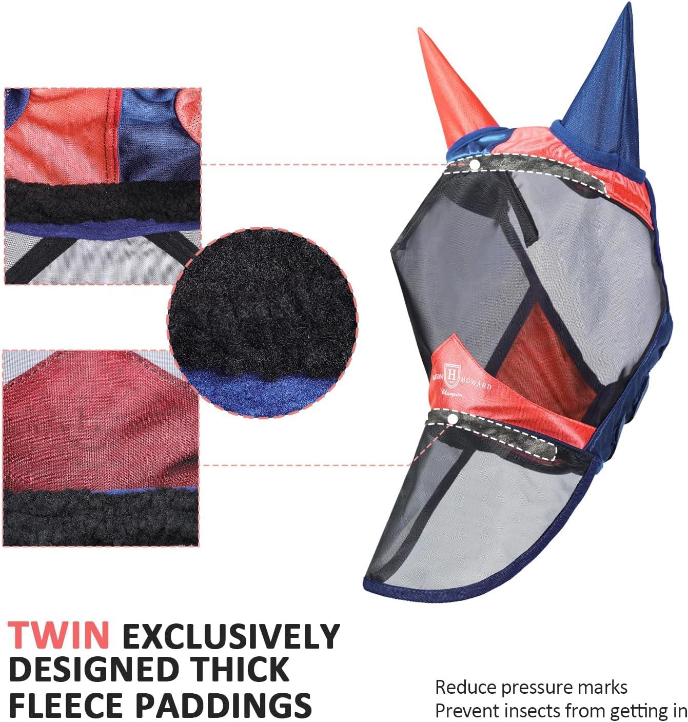 Harrison Howard CareMaster Pro Luminous Horse Fly Mask Large Eye Space Long Nose with Ears UV Protection for Horse Sky Blue L Full Size(Coral Orange/Navy)