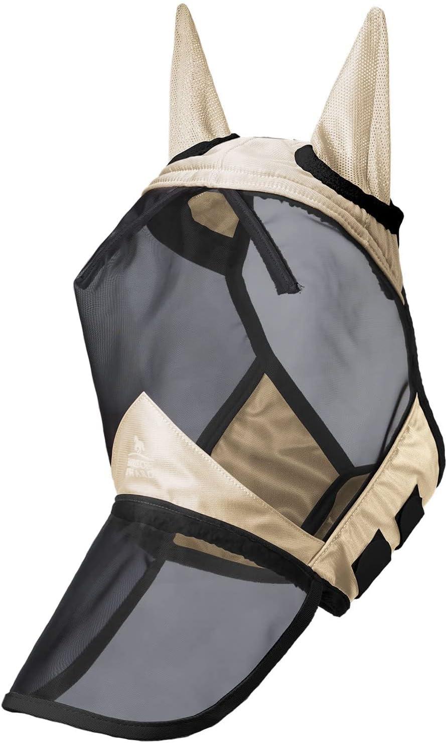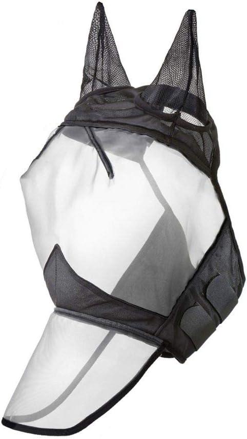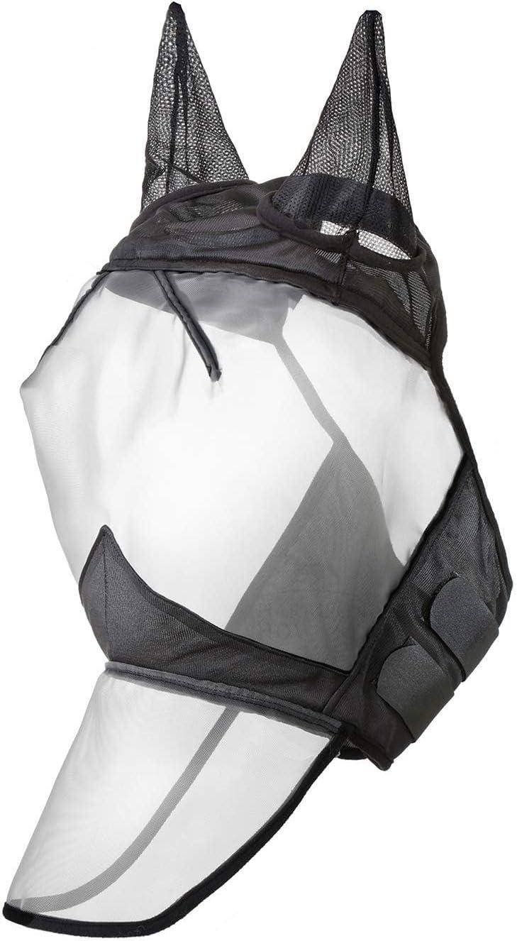 Harrison Howard CareMaster Horse Fly Mask Long Nose with Ears Full Face Black/Silver Retro Large Full Size(Black)