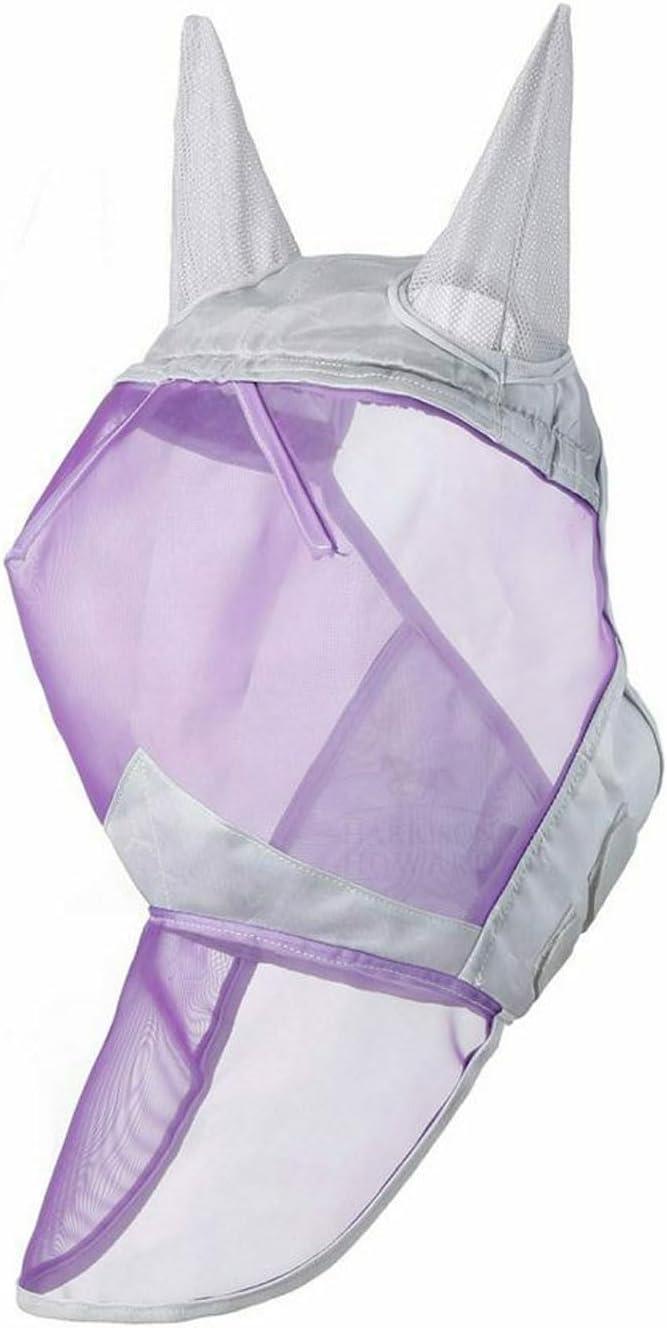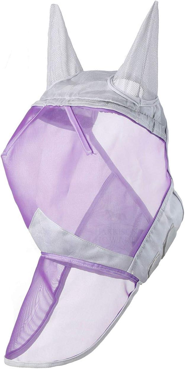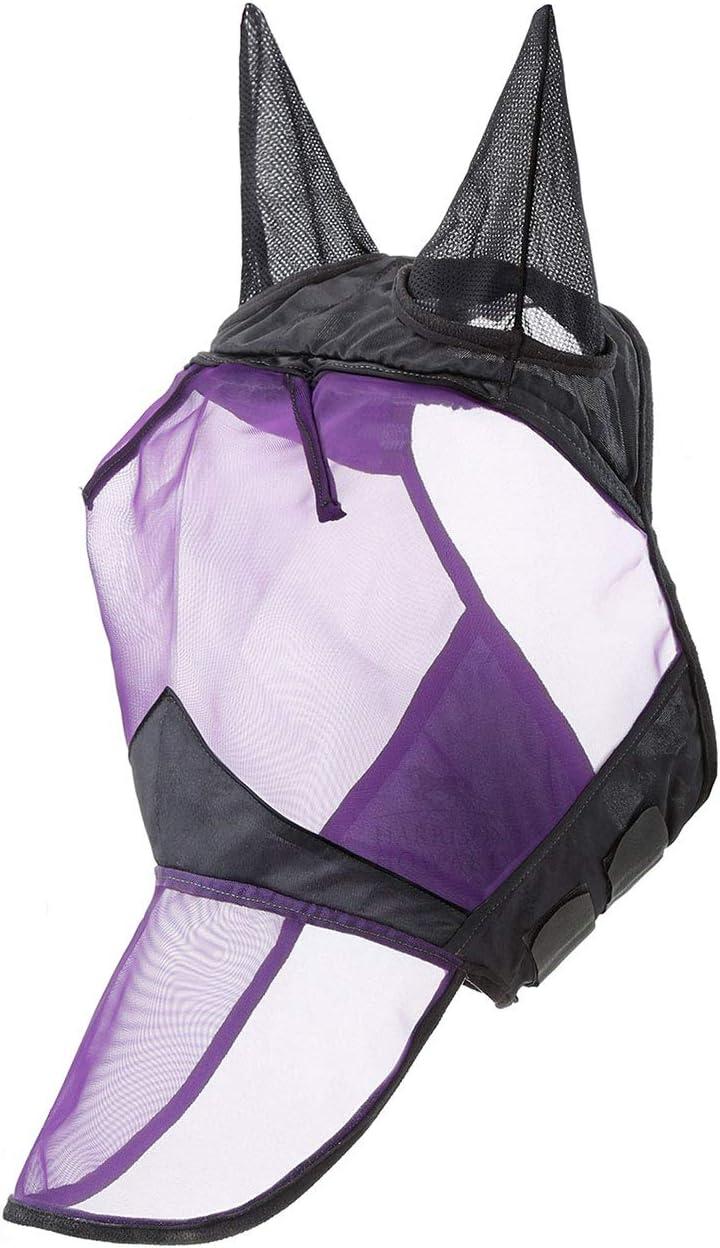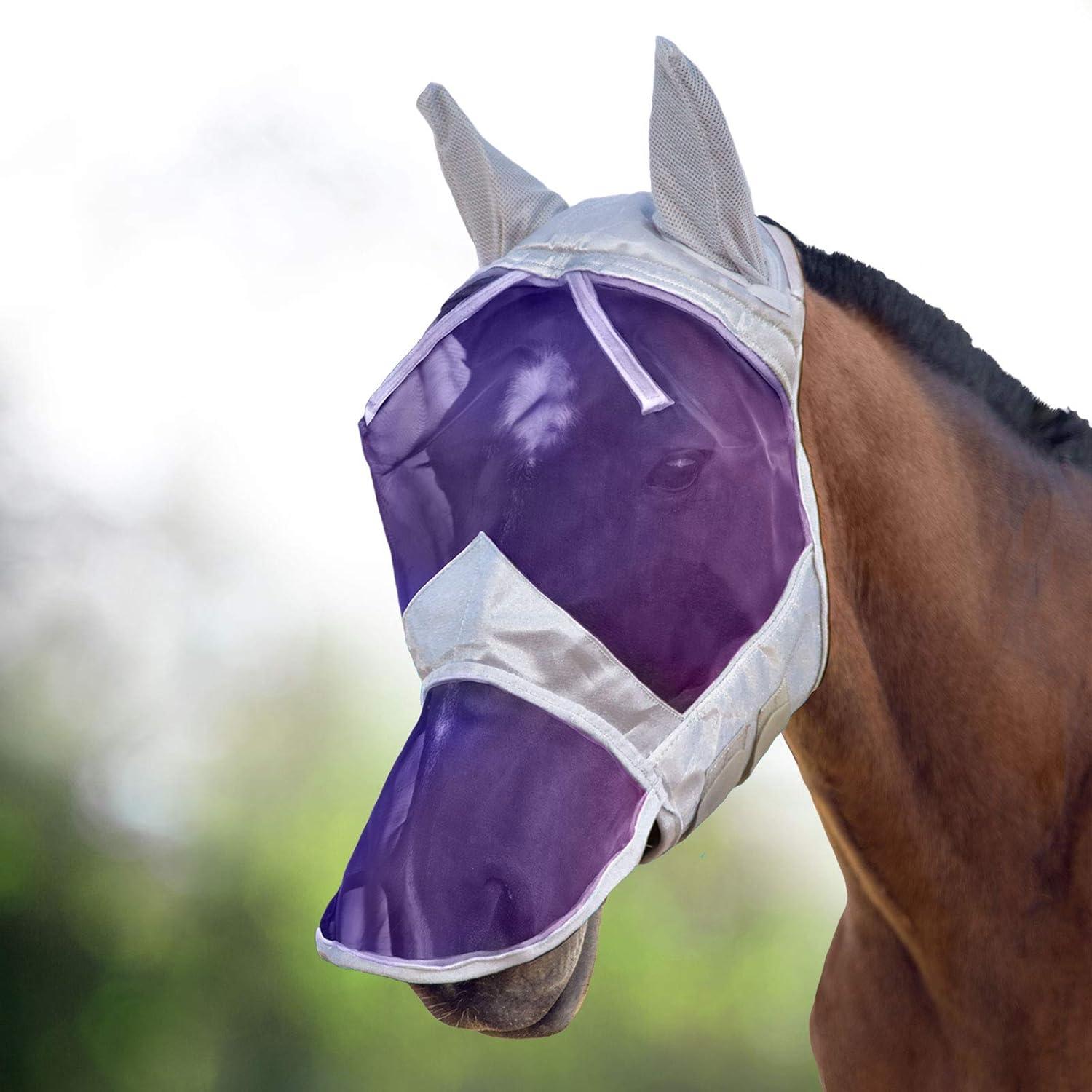 Harrison Howard CareMaster Horse Fly Mask Long Nose with Ears Full Face Black/Silver Retro Large Full Size(Black/Purple)