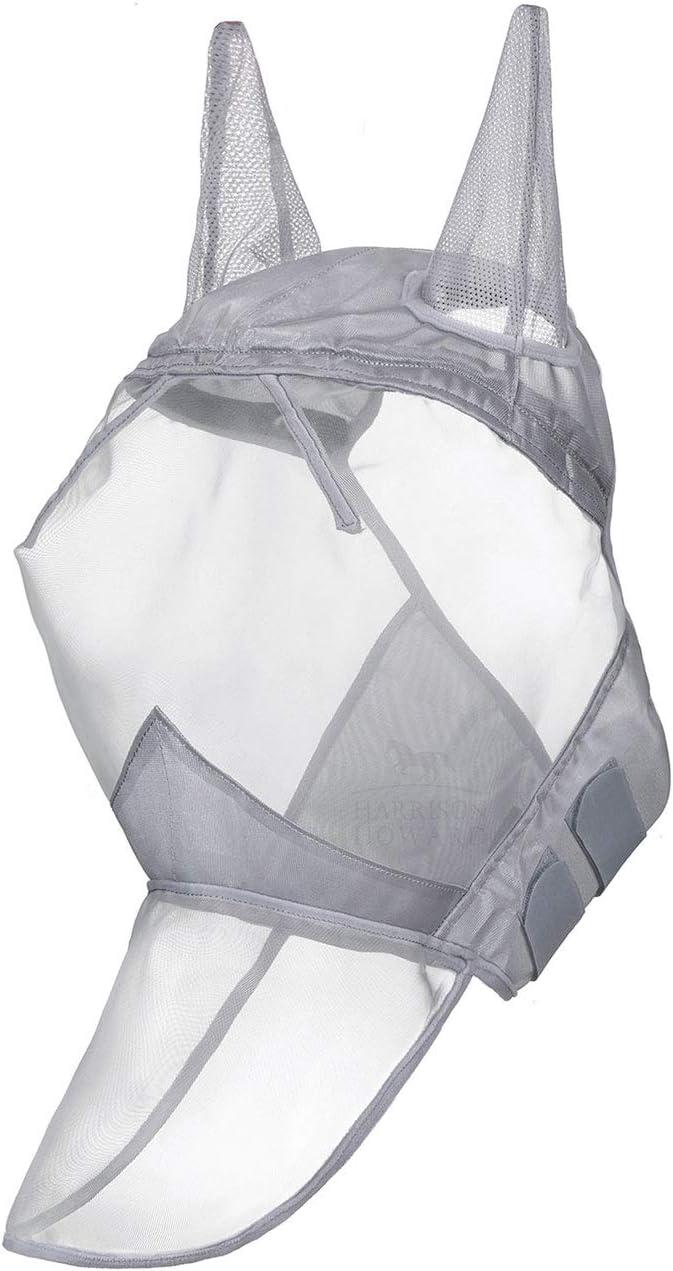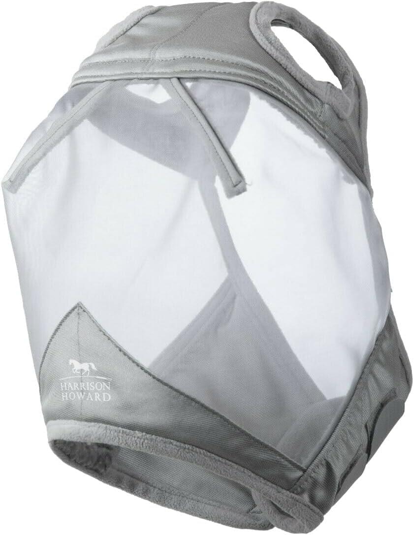 Harrison Howard CareMaster Horse Fly Mask Long Nose with Ears Full Face Black/Silver Retro Large Full Size(Black/Silver)