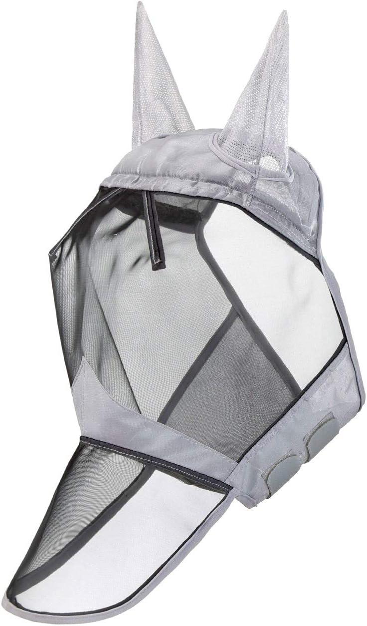 Harrison Howard CareMaster Horse Fly Mask Long Nose with Ears Full Face Black/Silver Retro Large Full Size(Moonlight Silver)