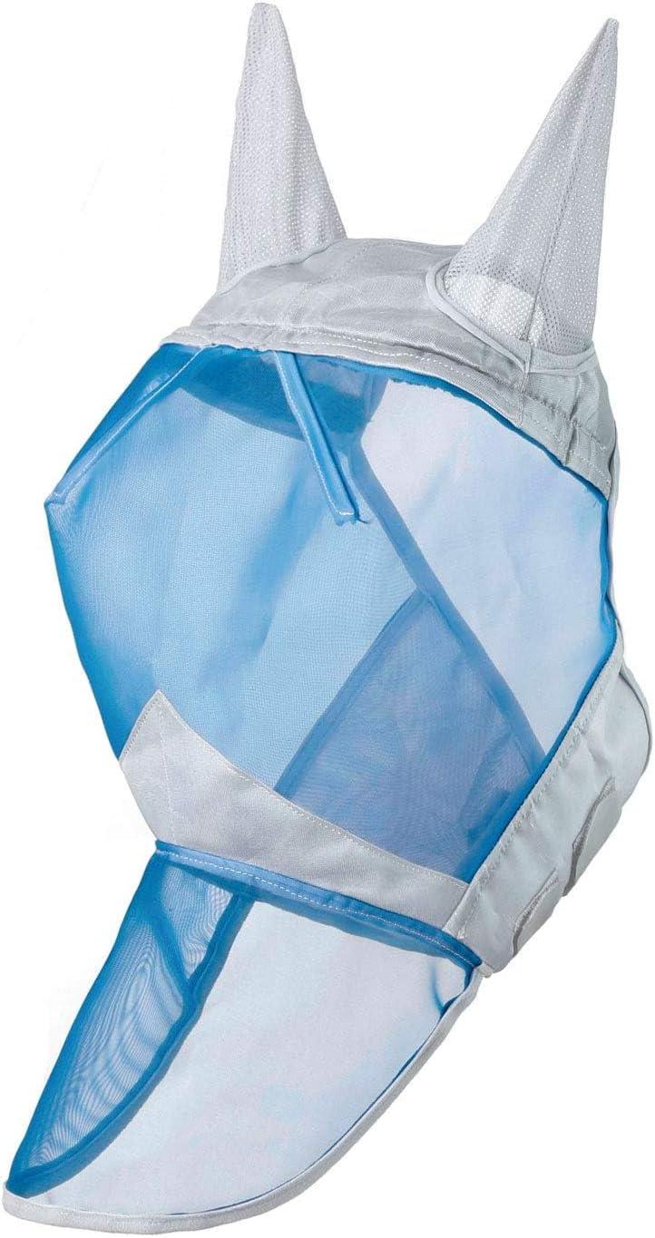 Harrison Howard CareMaster Horse Fly Mask Long Nose with Ears Full Face Black/Silver Retro Large Full Size(Silver/Blue)