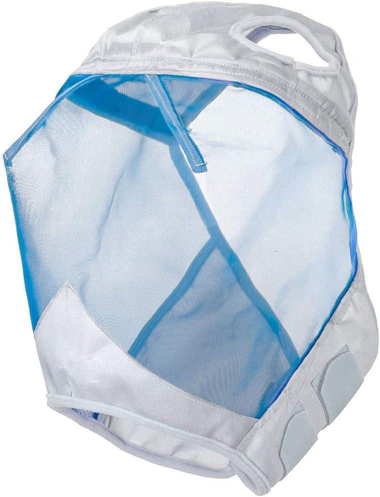 Harrison Howard CareMaster Pro Luminous Horse Fly Mask Large Eye Space Long Nose with Ears UV Protection for Horse Sky Blue L Full Size(Azure Blue/Silver)