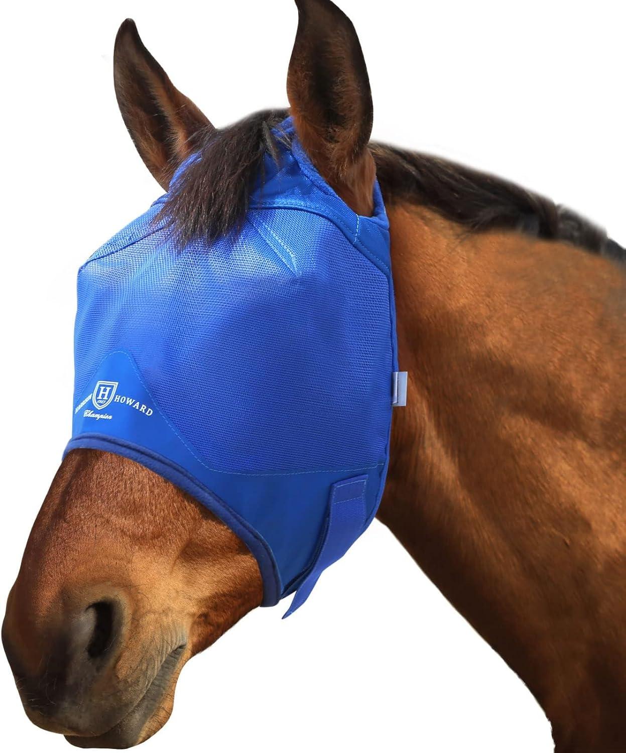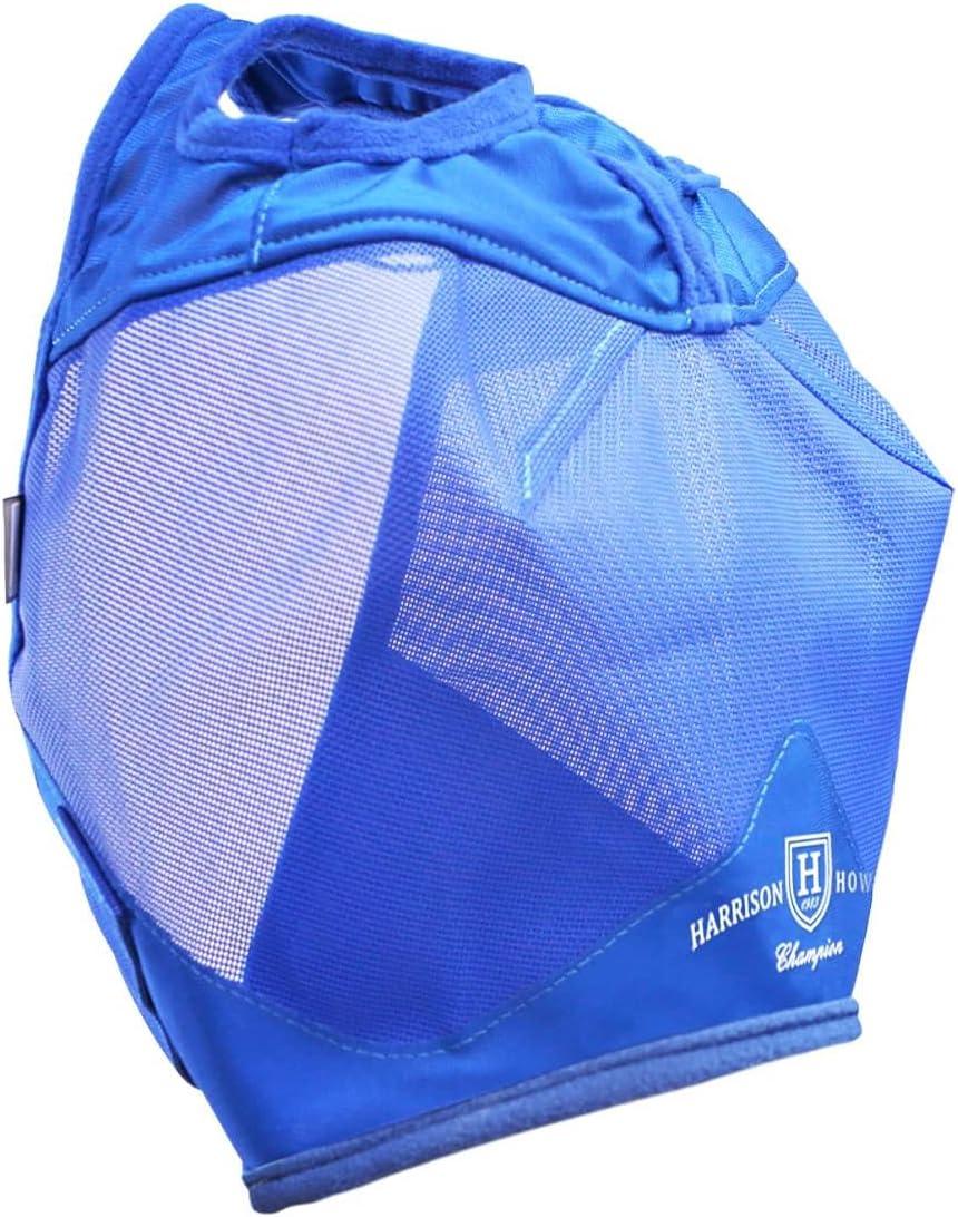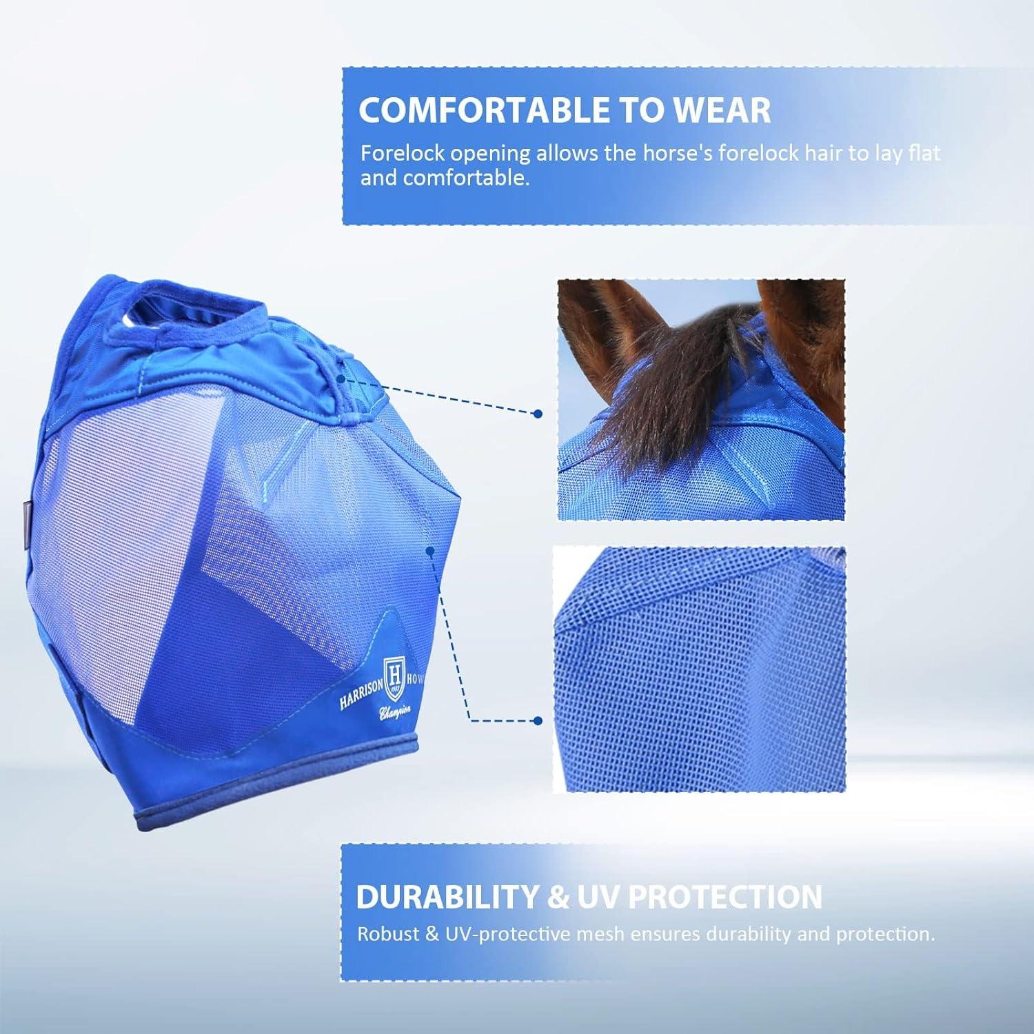 Harrison Howard UV-proof Multi-Function Fabrics Thick Fleece Padding Horse Fly Mask Half Face with Ears Mint Horse Large(Signature Blue)