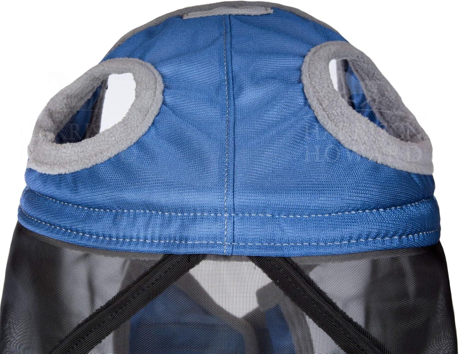 Harrison Howard CareMaster Pro Luminous Horse Fly Mask Large Eye Space Long Nose with Ears UV Protection for Horse Sky Blue L Full Size(Royal Blue)