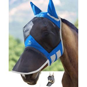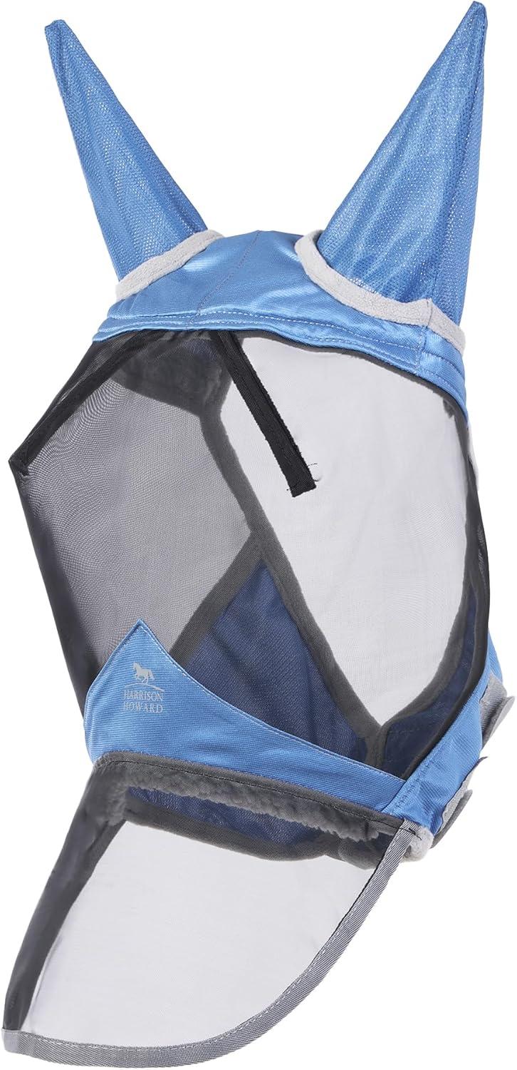 Harrison Howard Pro Luminous Horse Fly Mask Long Nose with Ears UV Protection for Horse Azure Blue/Silver L(Signature Blue)