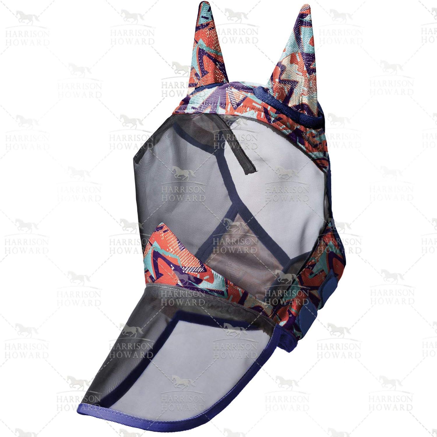 Harrison Howard LumiVista Horse Fly Mask Long Nose with Ears UV Protection for Horse Dream Star L Full Size(Abstract Graffiti)
