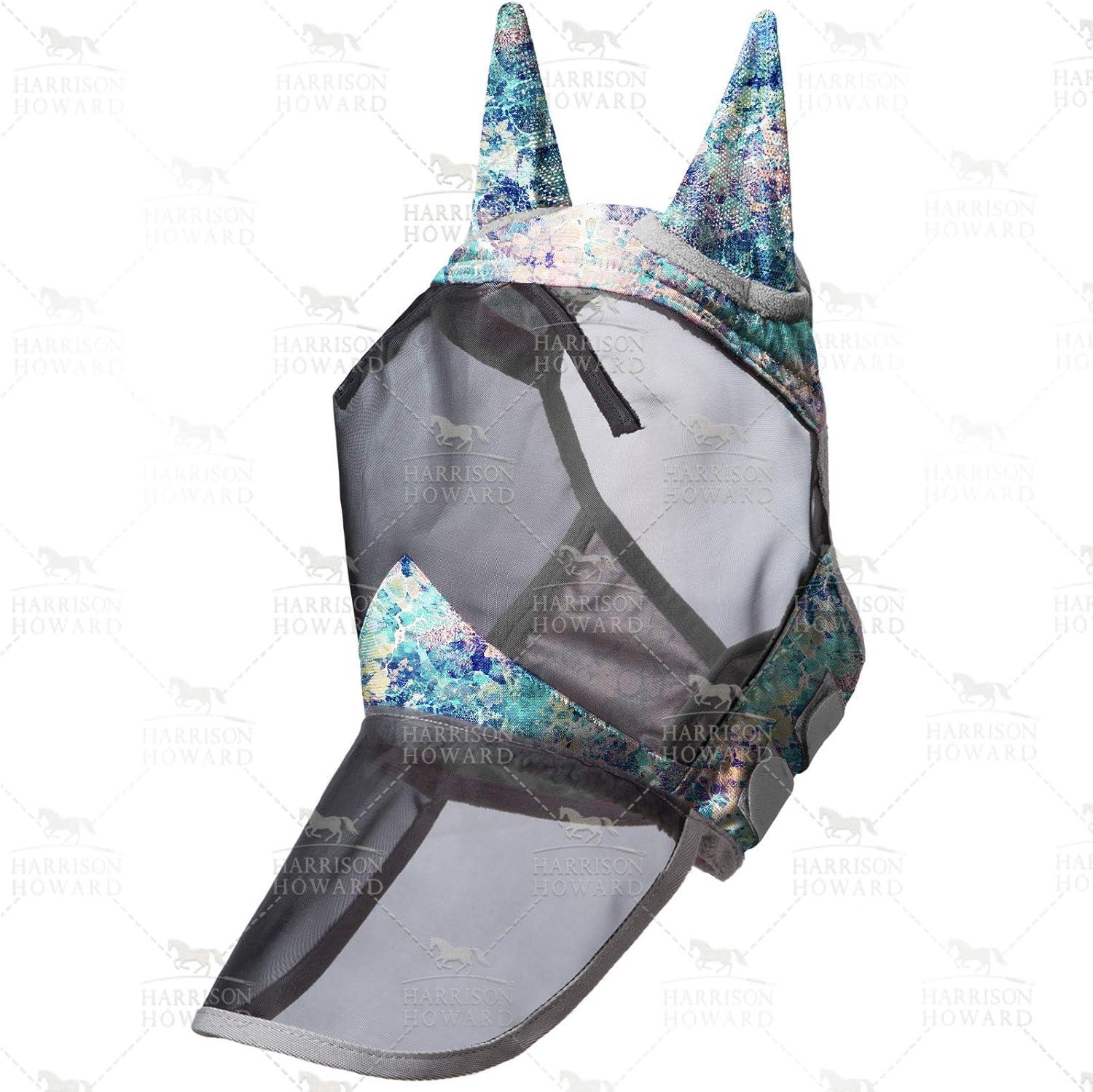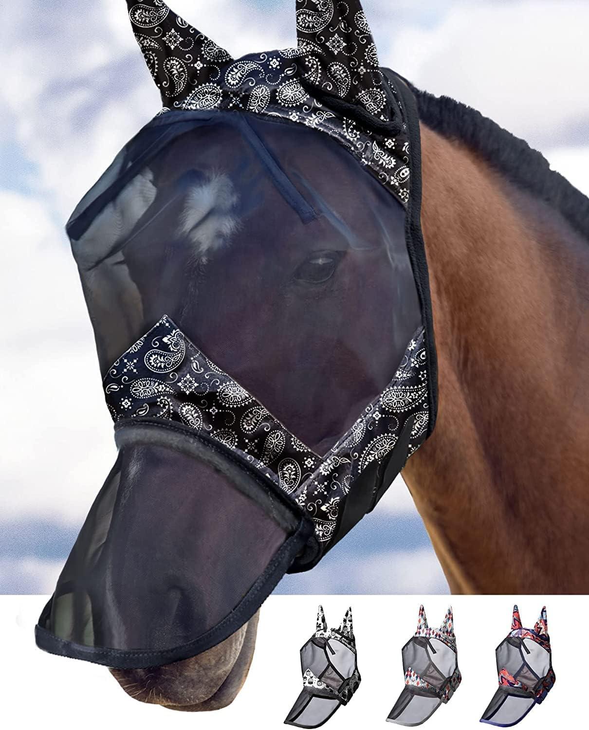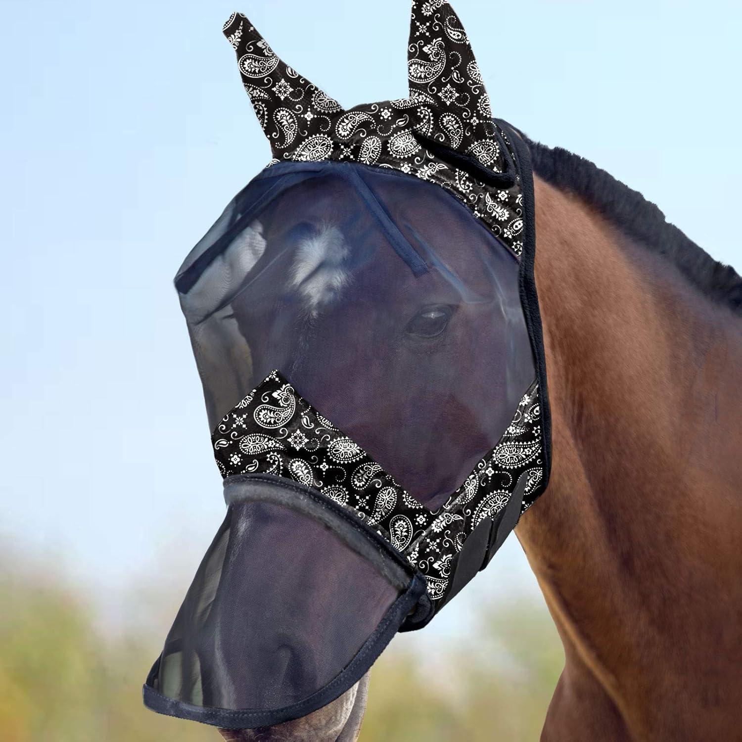 Harrison Howard LumiVista Horse Fly Mask Long Nose with Ears UV Protection for Horse Dream Star L Full Size(Paisley Wave)
