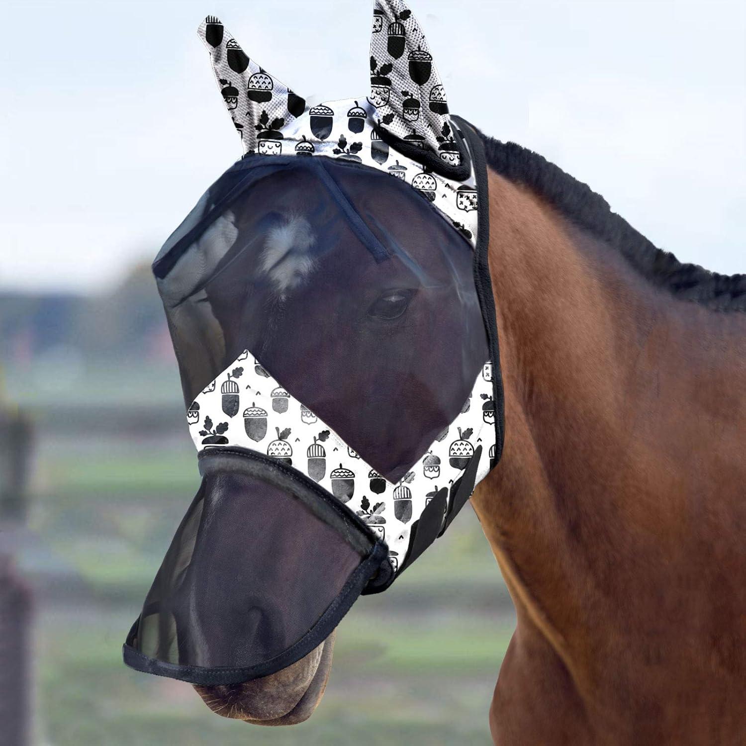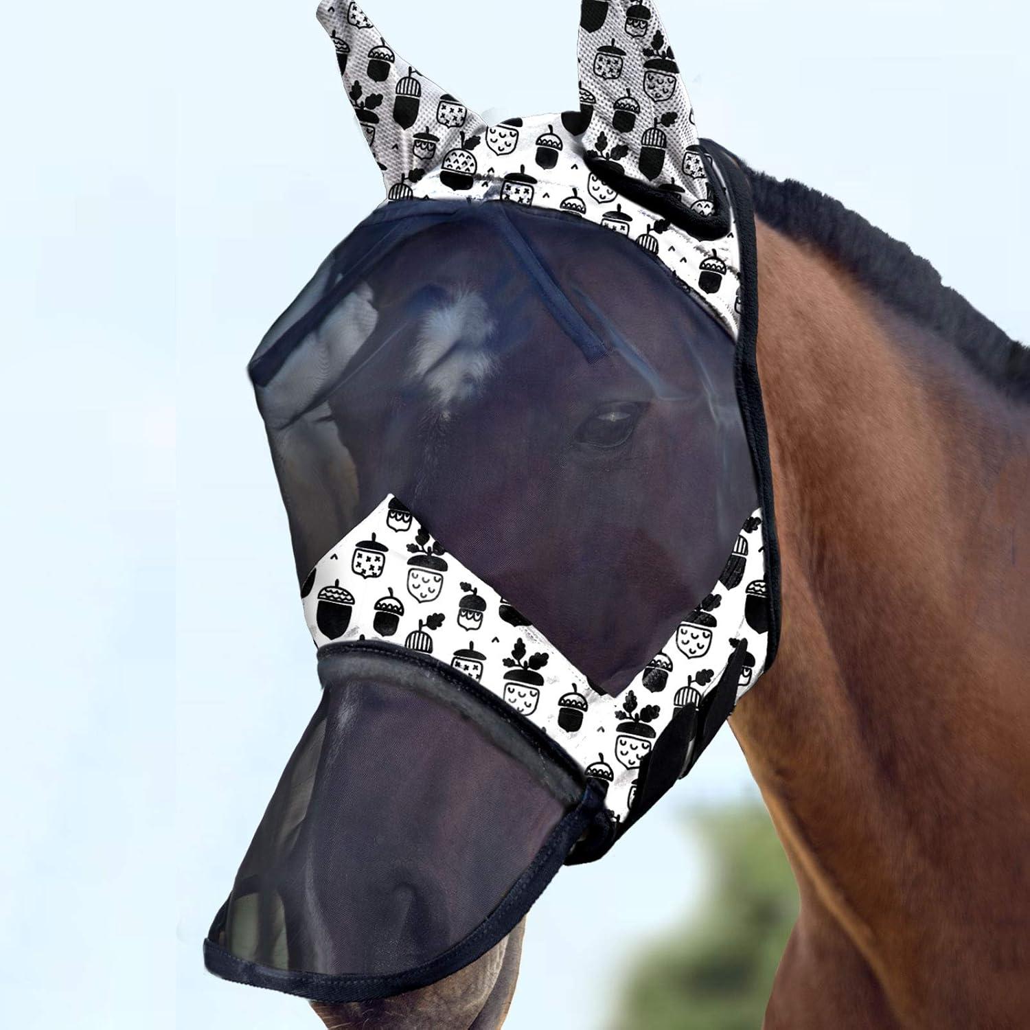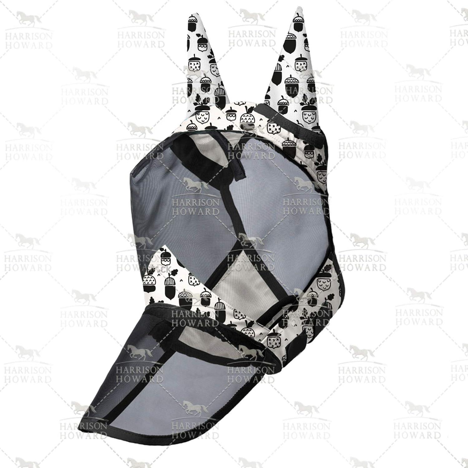 Harrison Howard LumiVista Horse Fly Mask Long Nose with Ears UV Protection for Horse Dream Star L Full Size(Pine Cones)