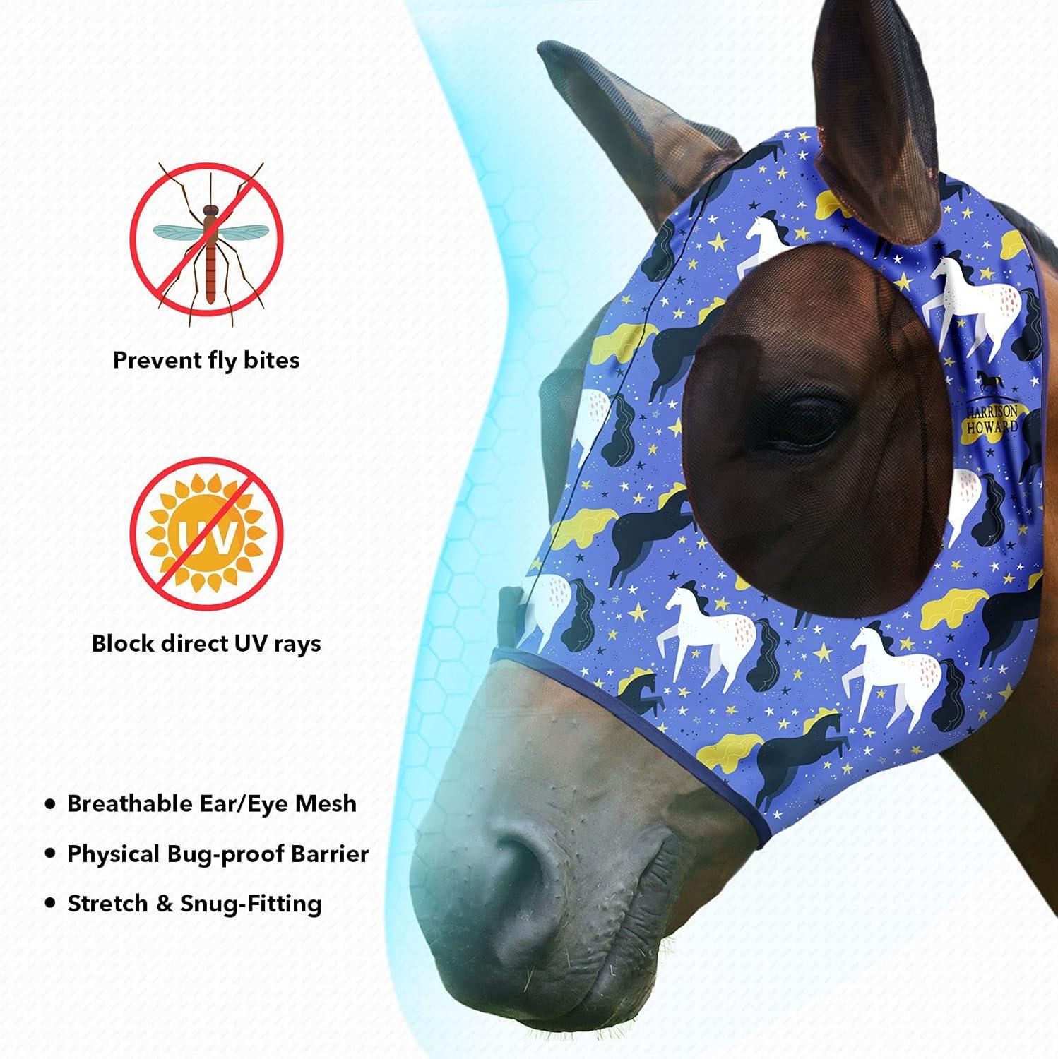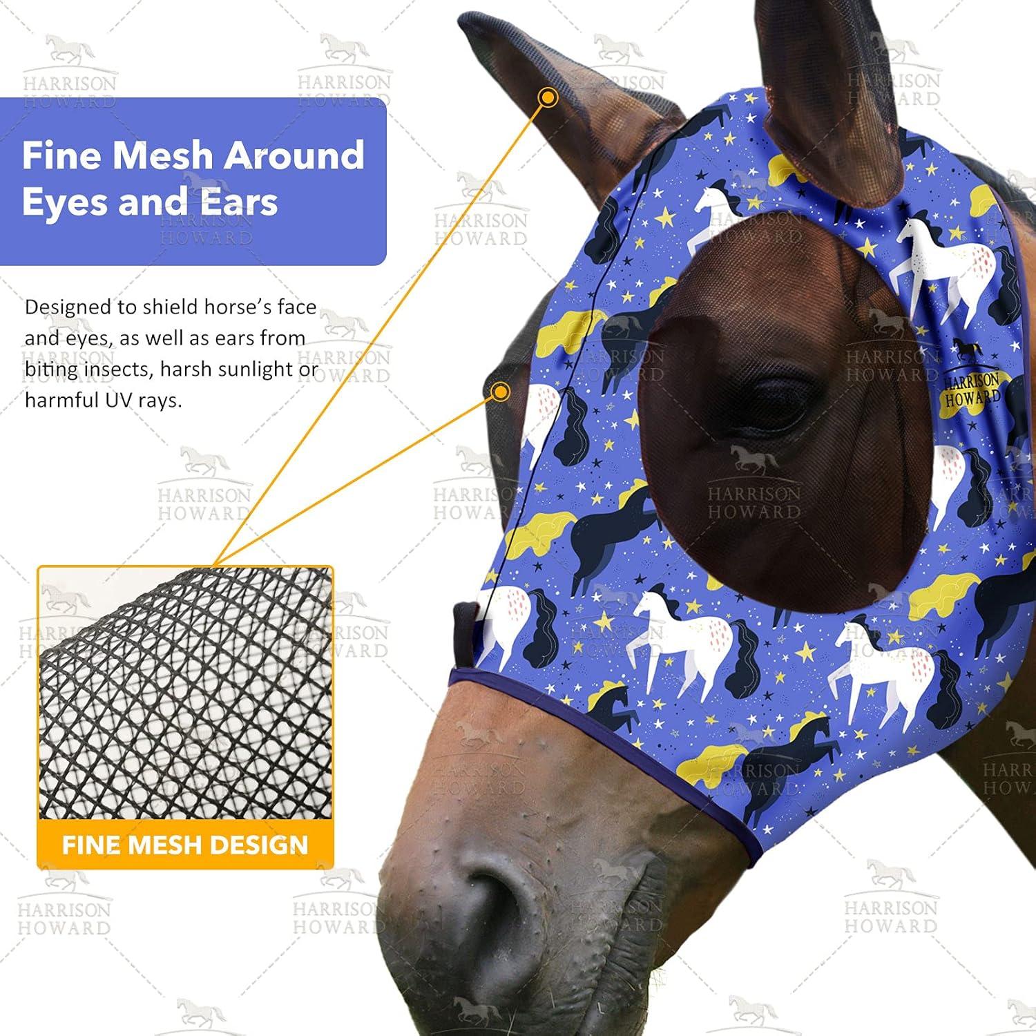Harrison Howard Super Comfort Stretchy Fly Mask Large Eye Space with UV Protection Soft on Skin with Breathability