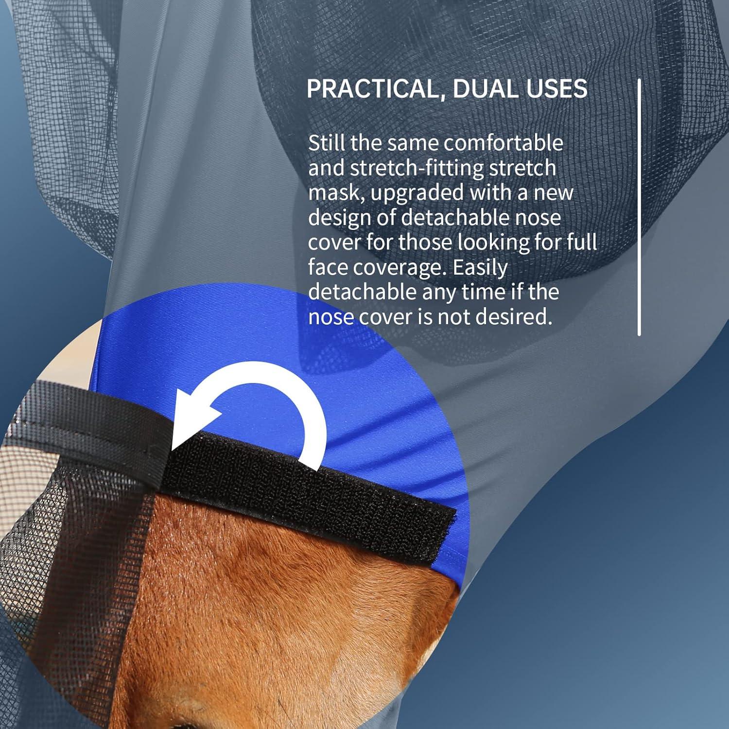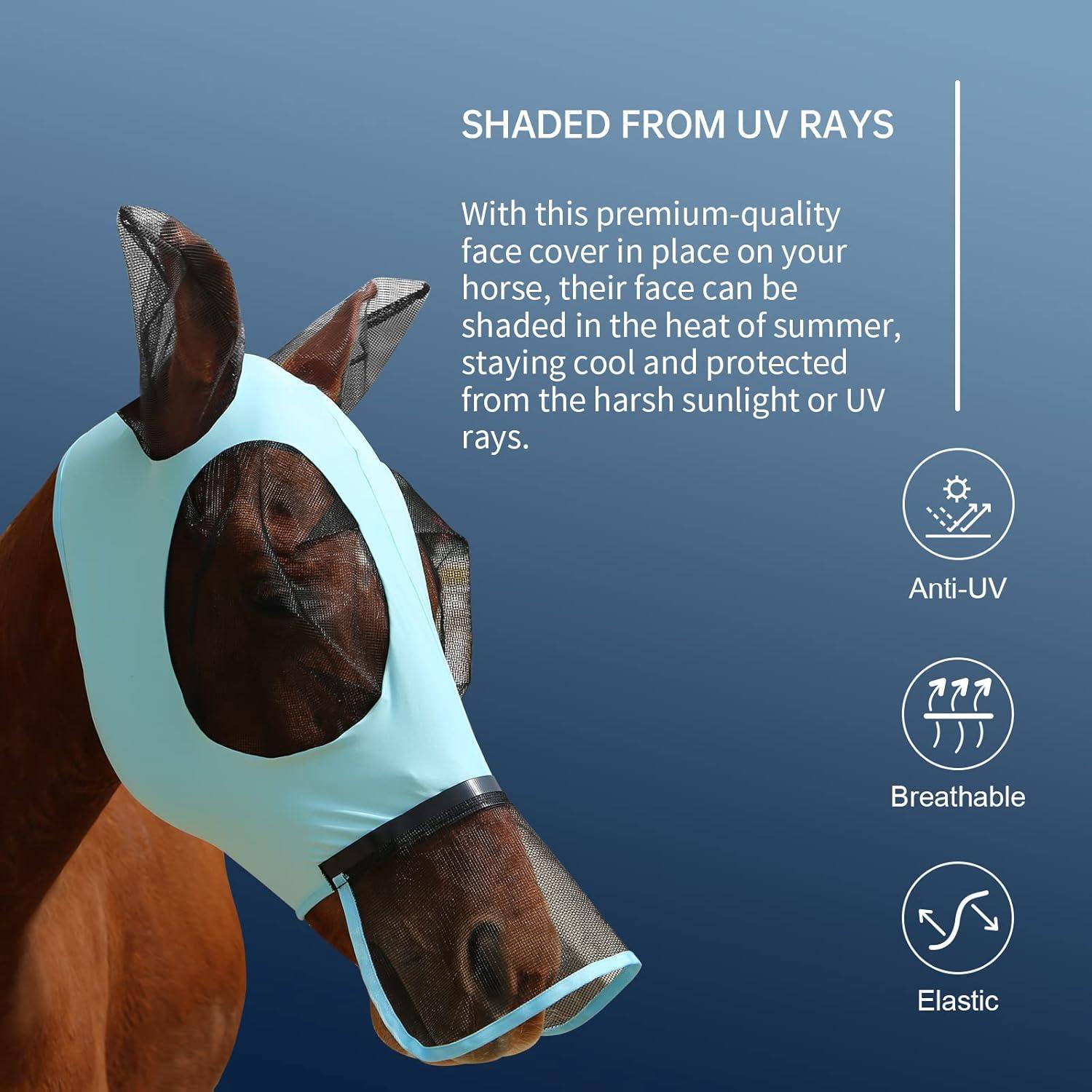 Harrison Howard Horse Fly Mask with Detachable Nose Cover-Ice Blue (L; Full Size)