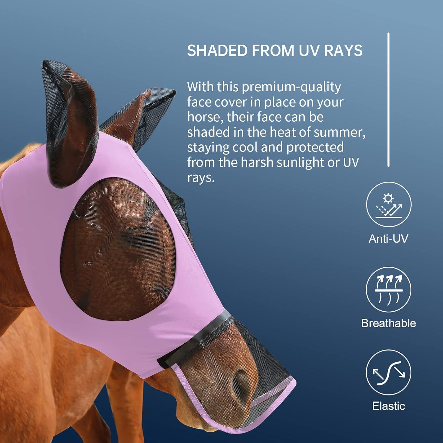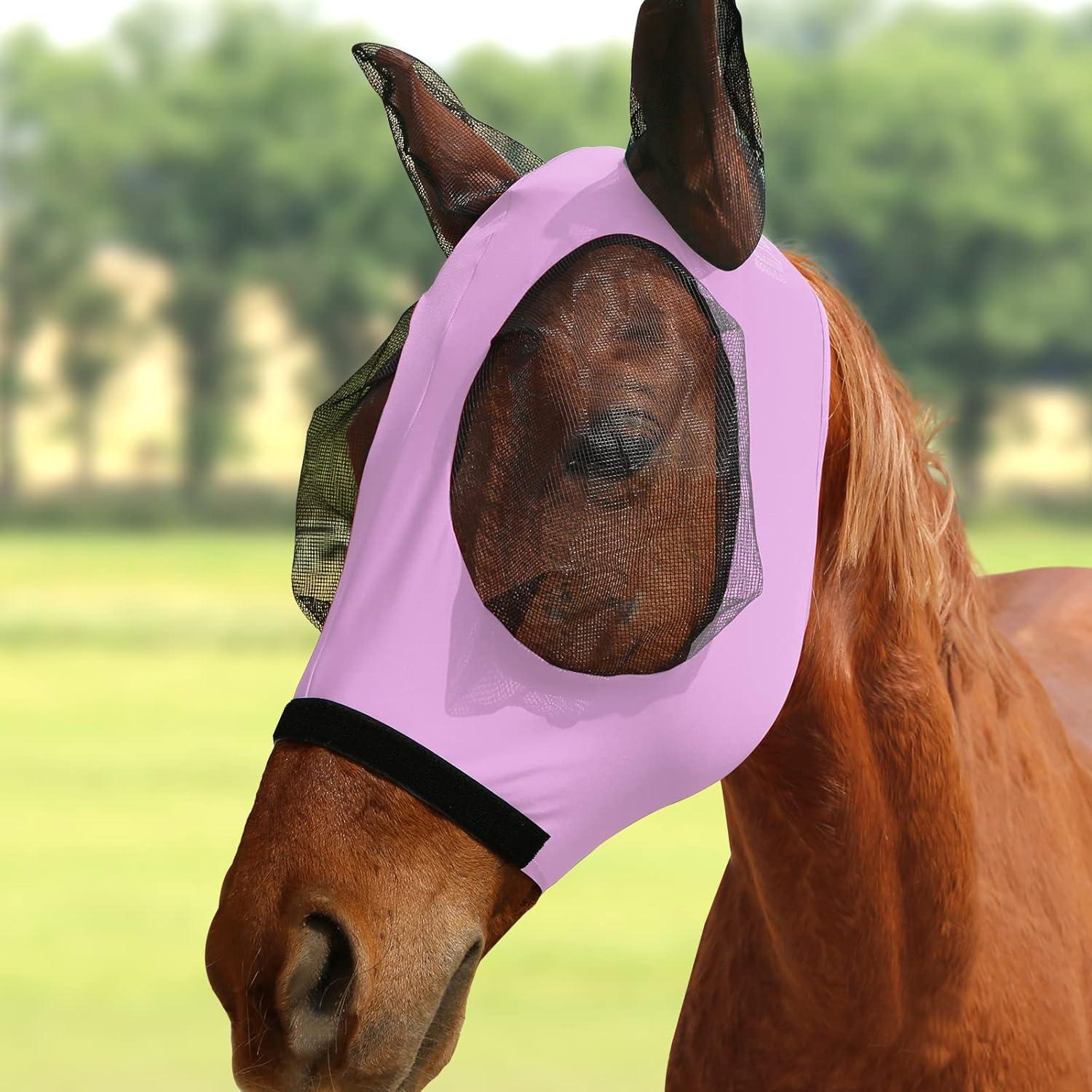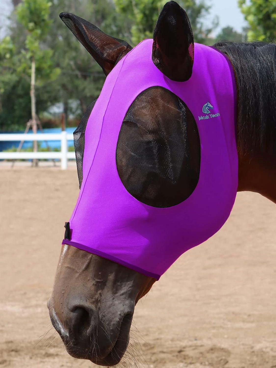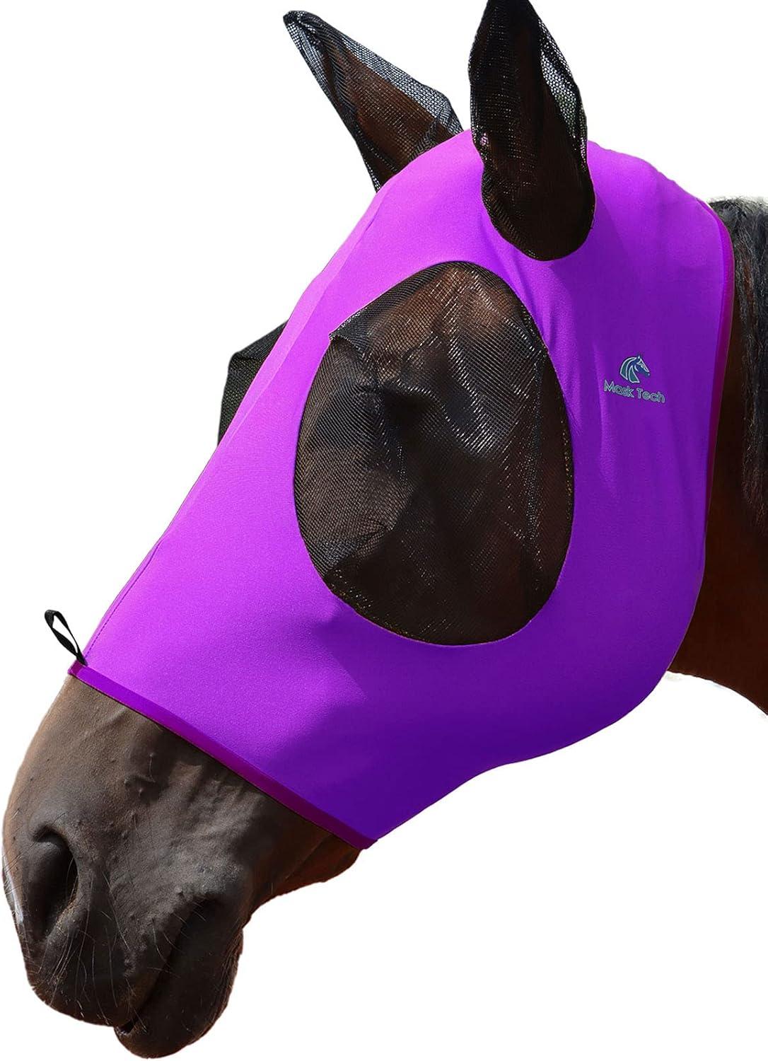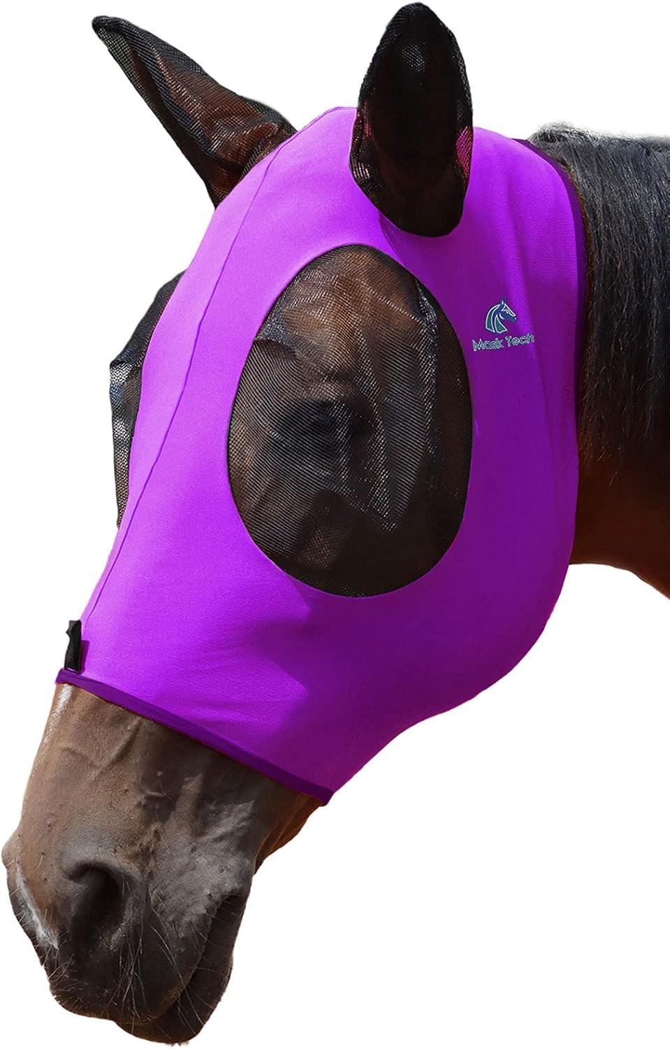 Mask Tech Horse Fly Mask Elasticity Breathable Fabric with UV Protection Soft Mesh for Horse Entwined Straps L(Amethyst)