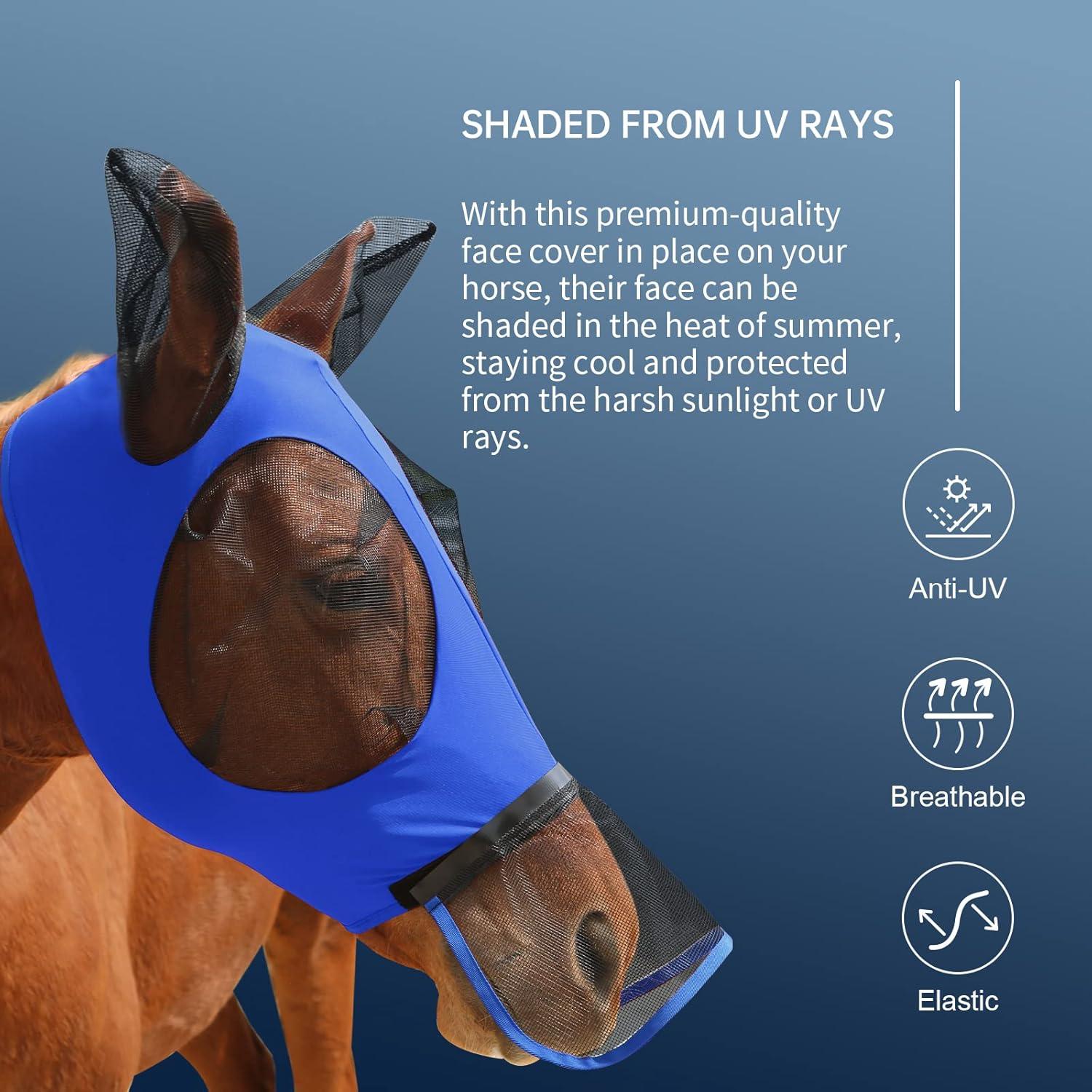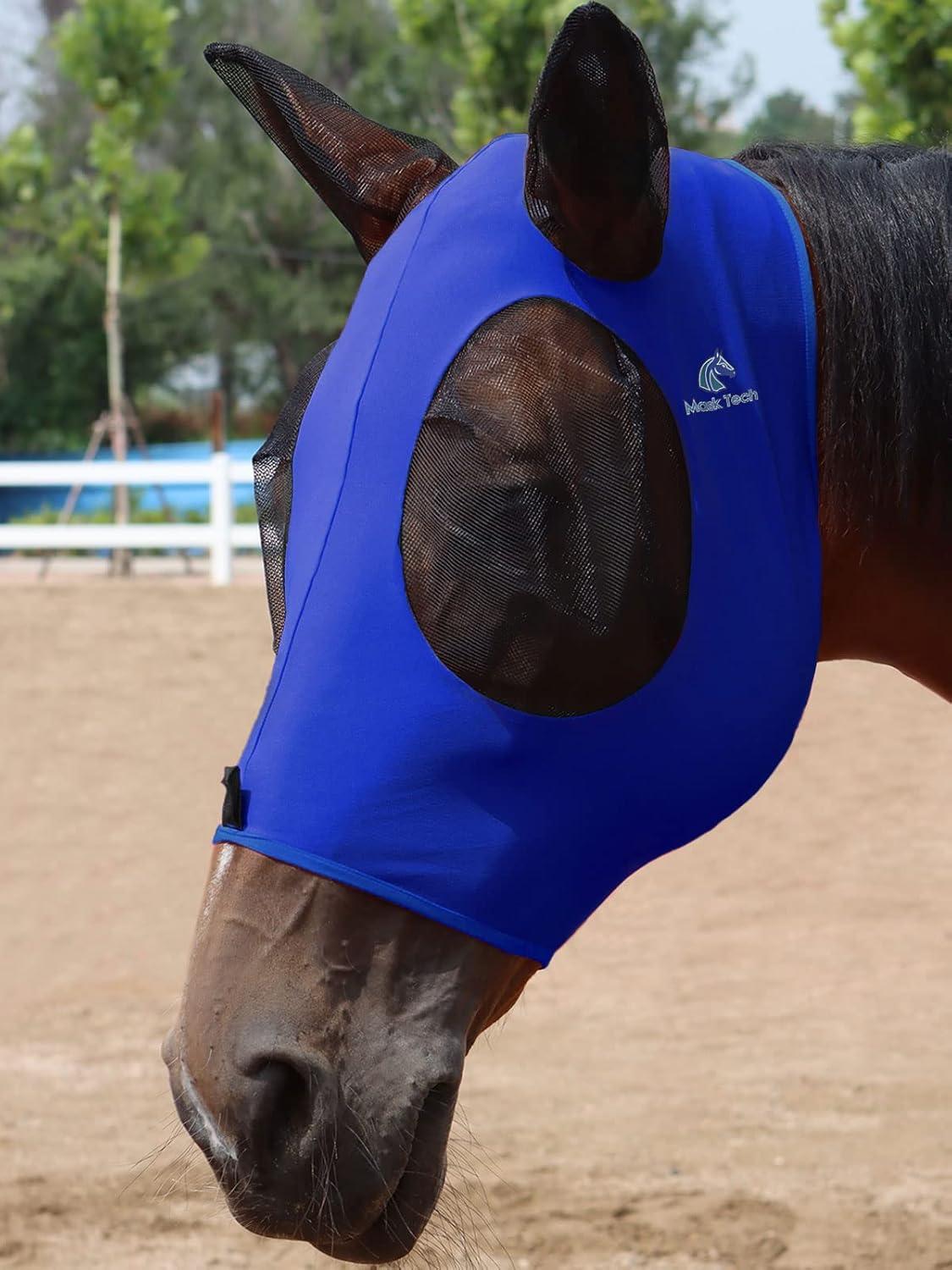 Mask Tech Horse Fly Mask Elasticity Breathable Fabric with UV Protection Soft Mesh for Horse Entwined Straps L(Deep Blue)