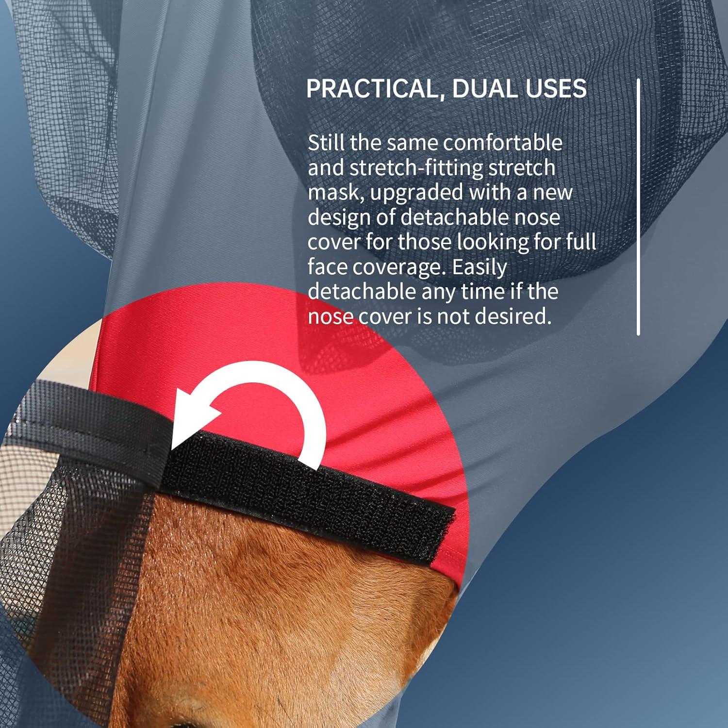 Mask Tech Horse Fly Mask Elasticity Breathable Fabric with UV Protection Soft Mesh for Horse Entwined Straps L(Grey)