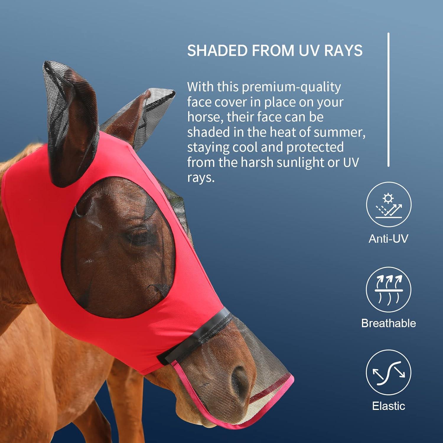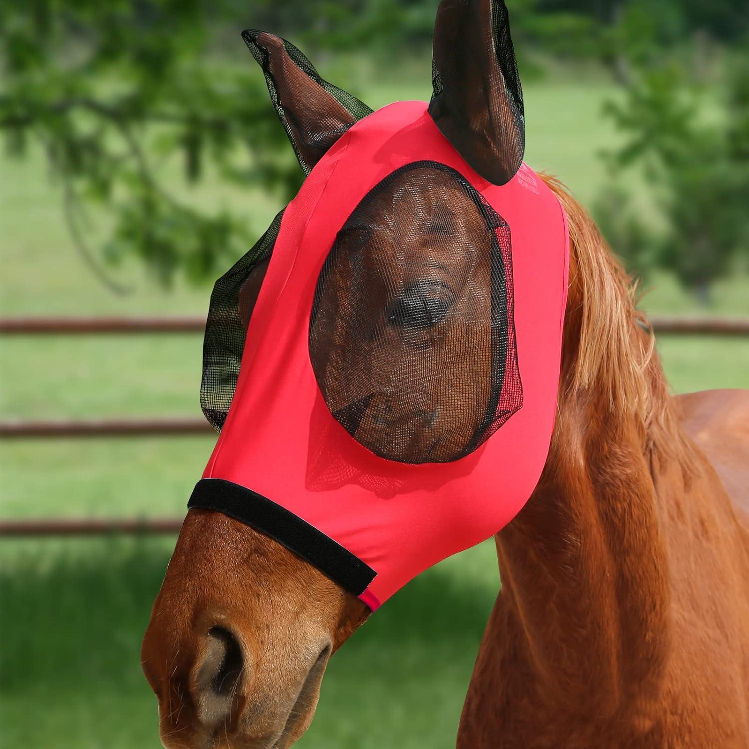 Harrison Howard Super Comfort Stretchy Fly Mask Large Eye Space with UV Protection Soft on Skin with Breathability-Lava Red