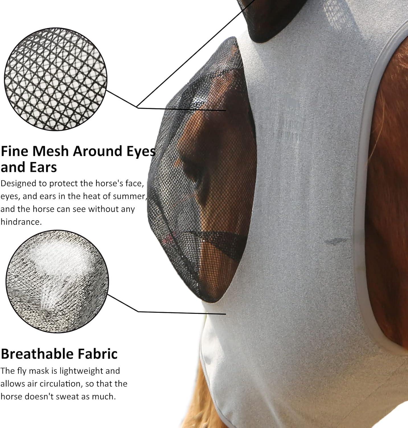 Harrison Howard Super Comfort Horse Fly Mask Elasticity Fly Mask with Ears UV Protection for Horse Silver Grey M Cob