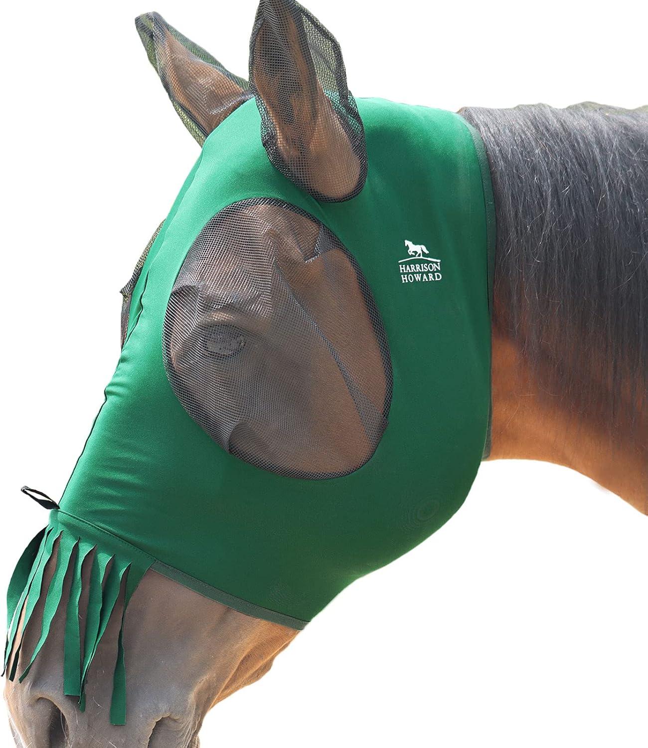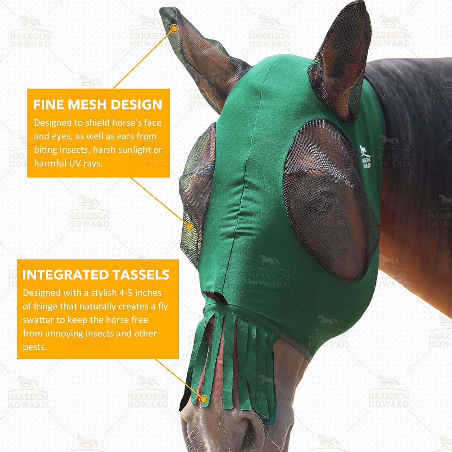 Harrison Howard Superior Comfort Breathable Fly Masks Soft on Skin with Tassels Natural Nose Swatter(Tassel Fringe-Deep Green)
