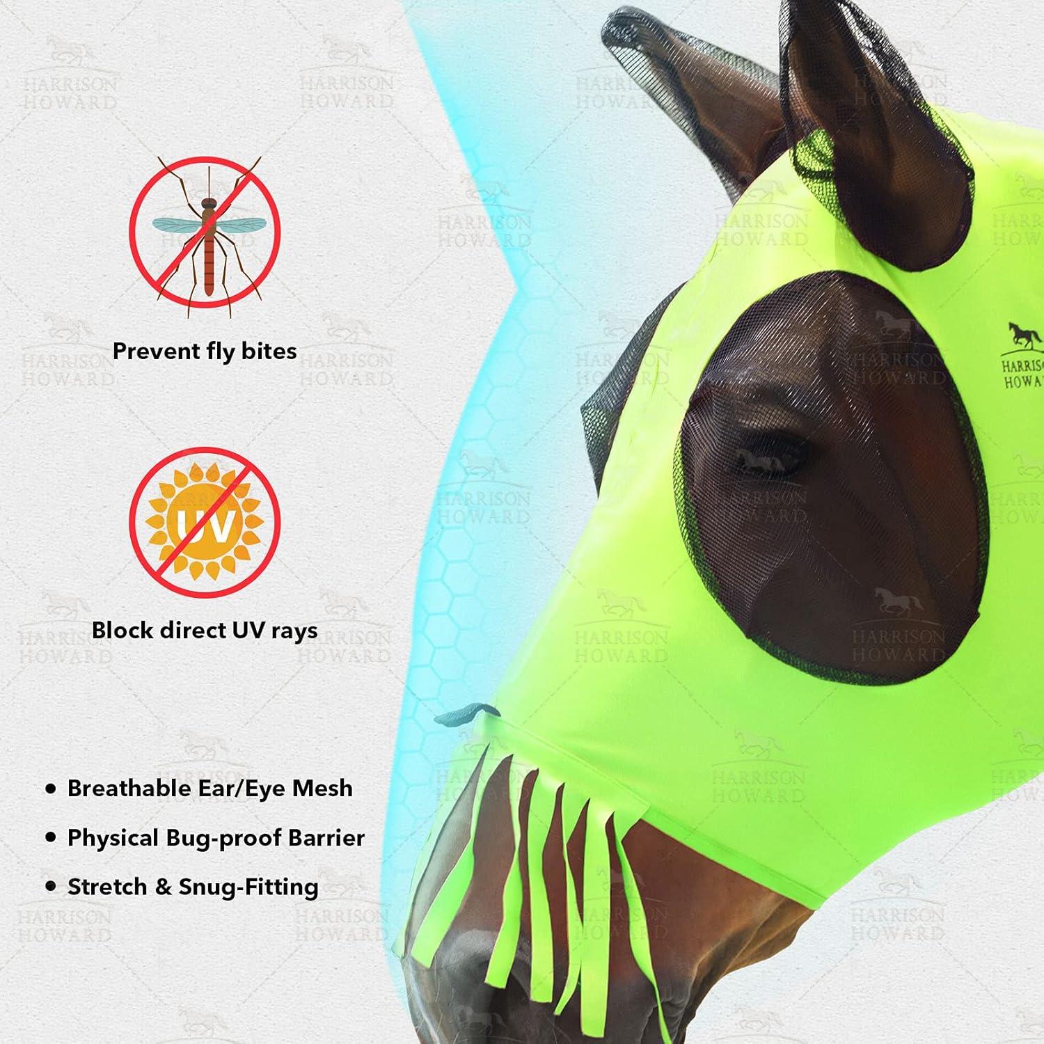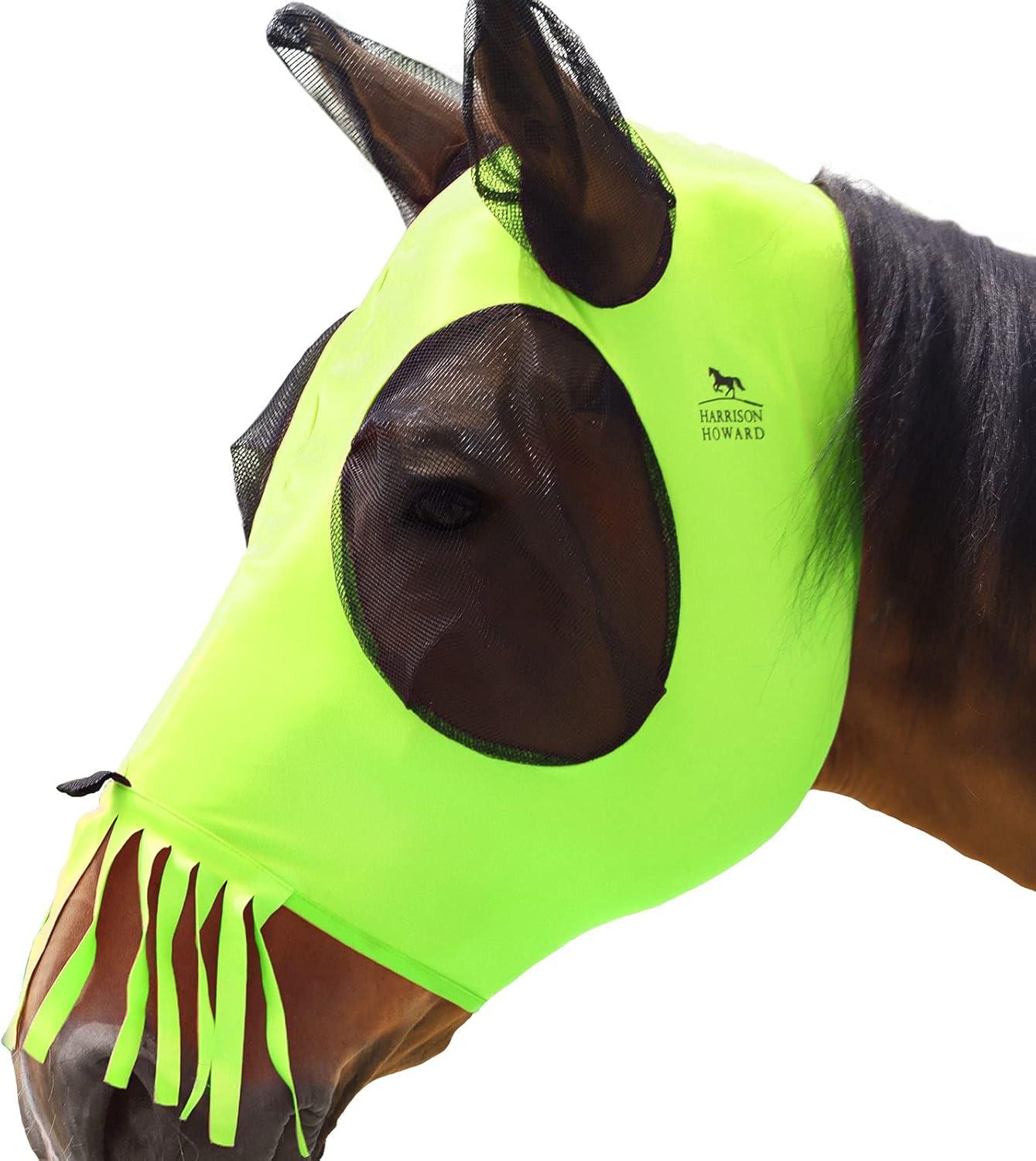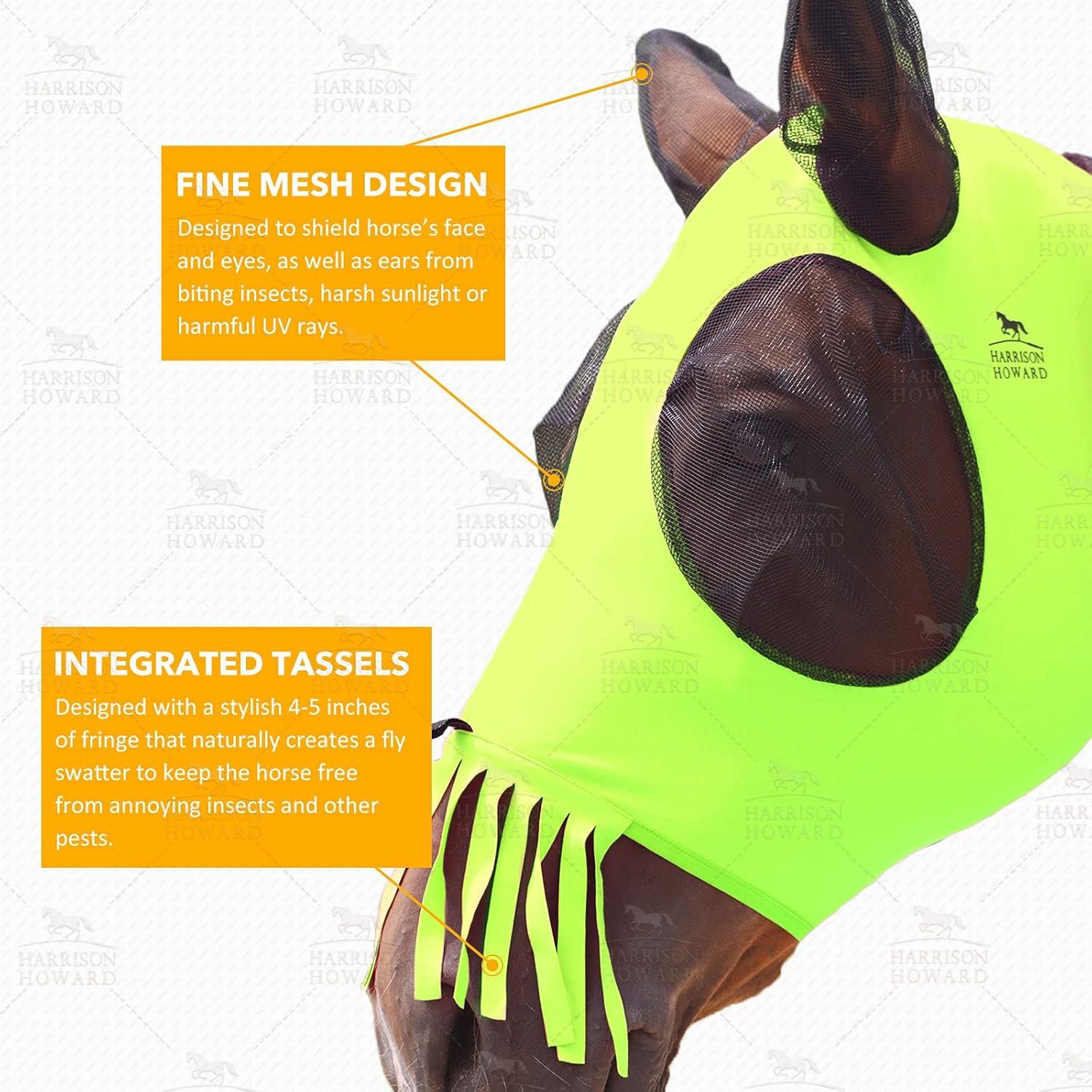 Harrison Howard Superior Comfort Breathable Fly Masks Soft on Skin with Tassels Natural Nose Swatter(Tassel Fringe-Fluro-Lime)