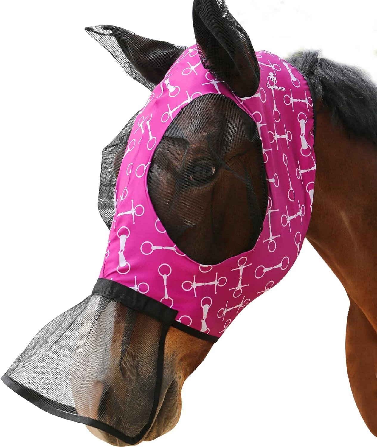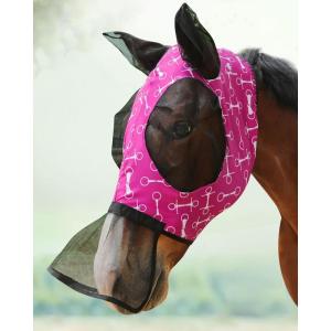 Horse Fly Mask with Nose Skirt Fine Mesh Sleek Pull-on Design Pink Skirt Pink Bits L (Full Size)