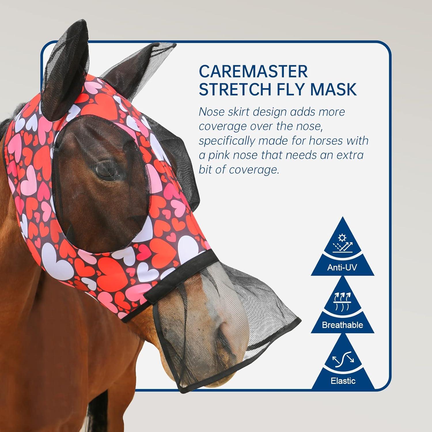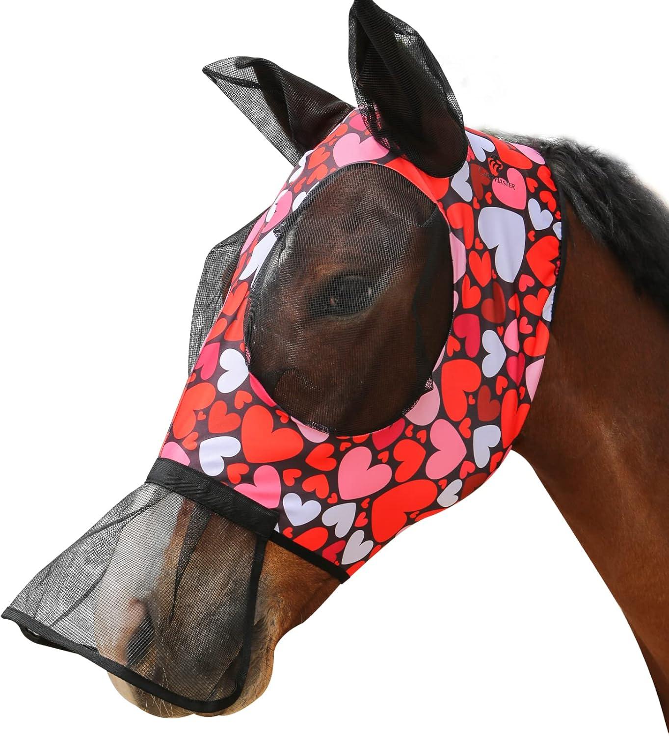 Horse Fly Mask with Nose Skirt Fine Mesh Sleek Pull-on Design-Cute Hearts (L; Full Size)