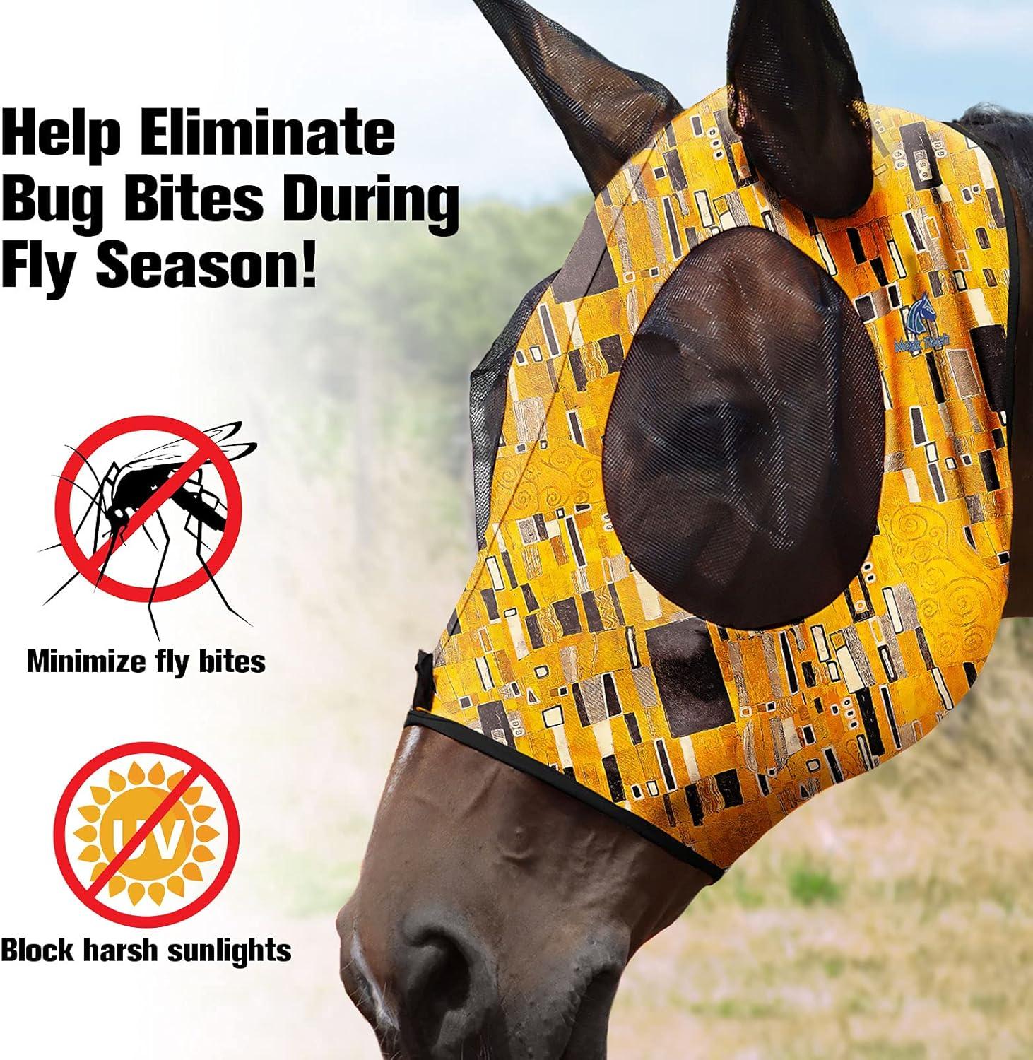 Mask Tech Horse Fly Mask Elasticity Breathable Fabric with UV Protection Soft Mesh for Horse Entwined Straps L(Golden Matrix)