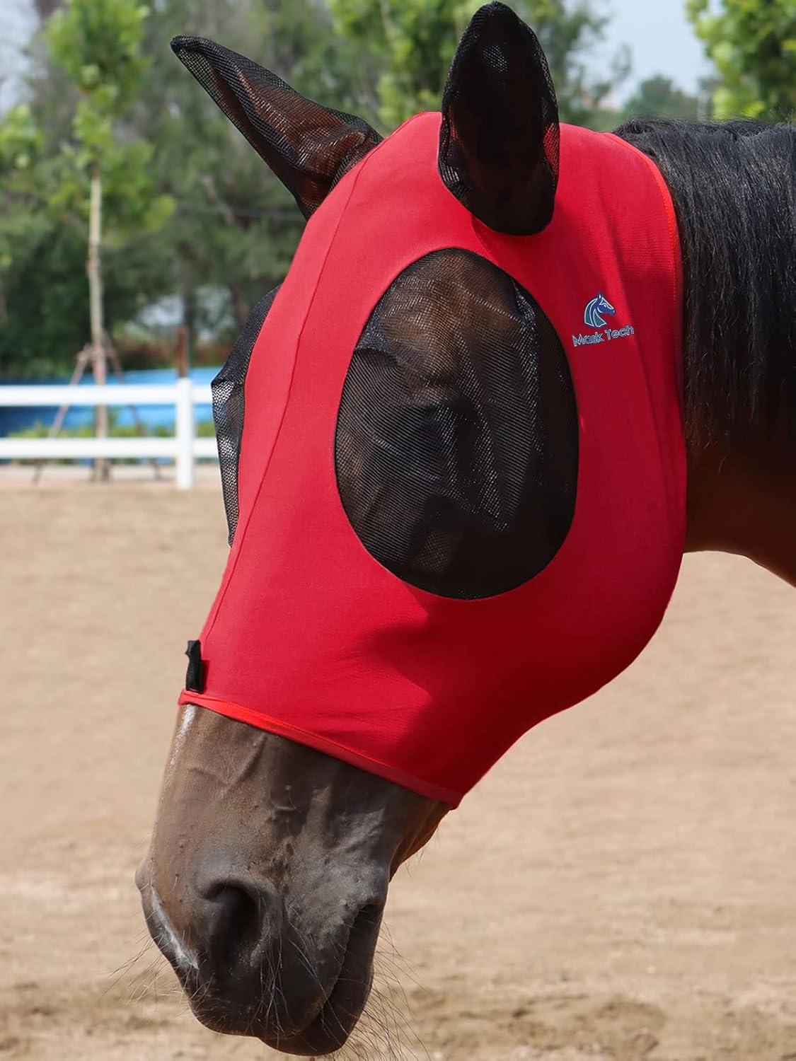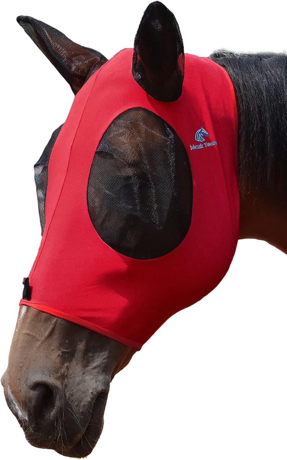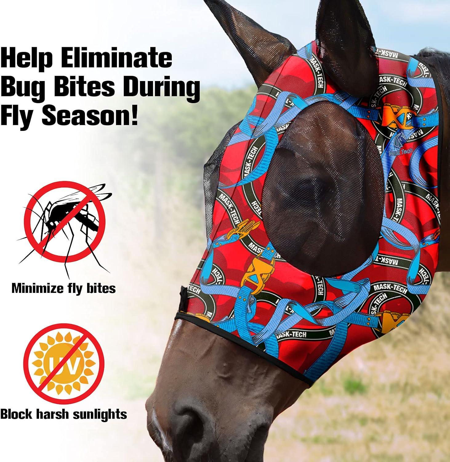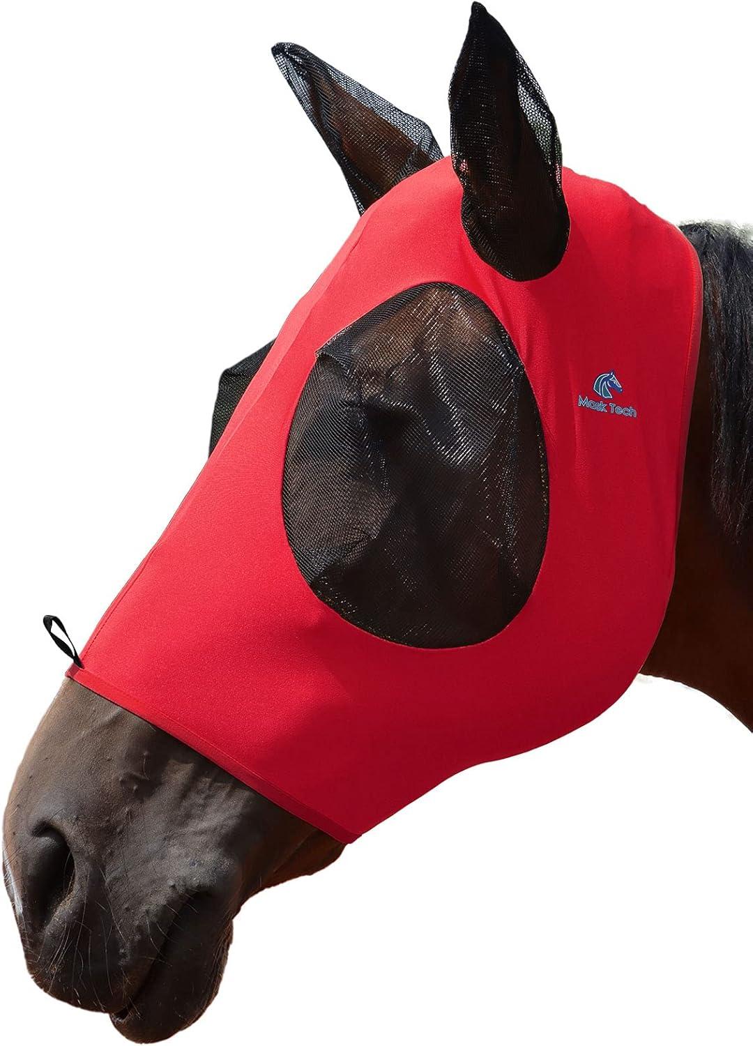 Mask Tech Horse Fly Mask Elasticity Breathable Fabric with UV Protection Soft Mesh for Horse Entwined Straps L(Lava Red)