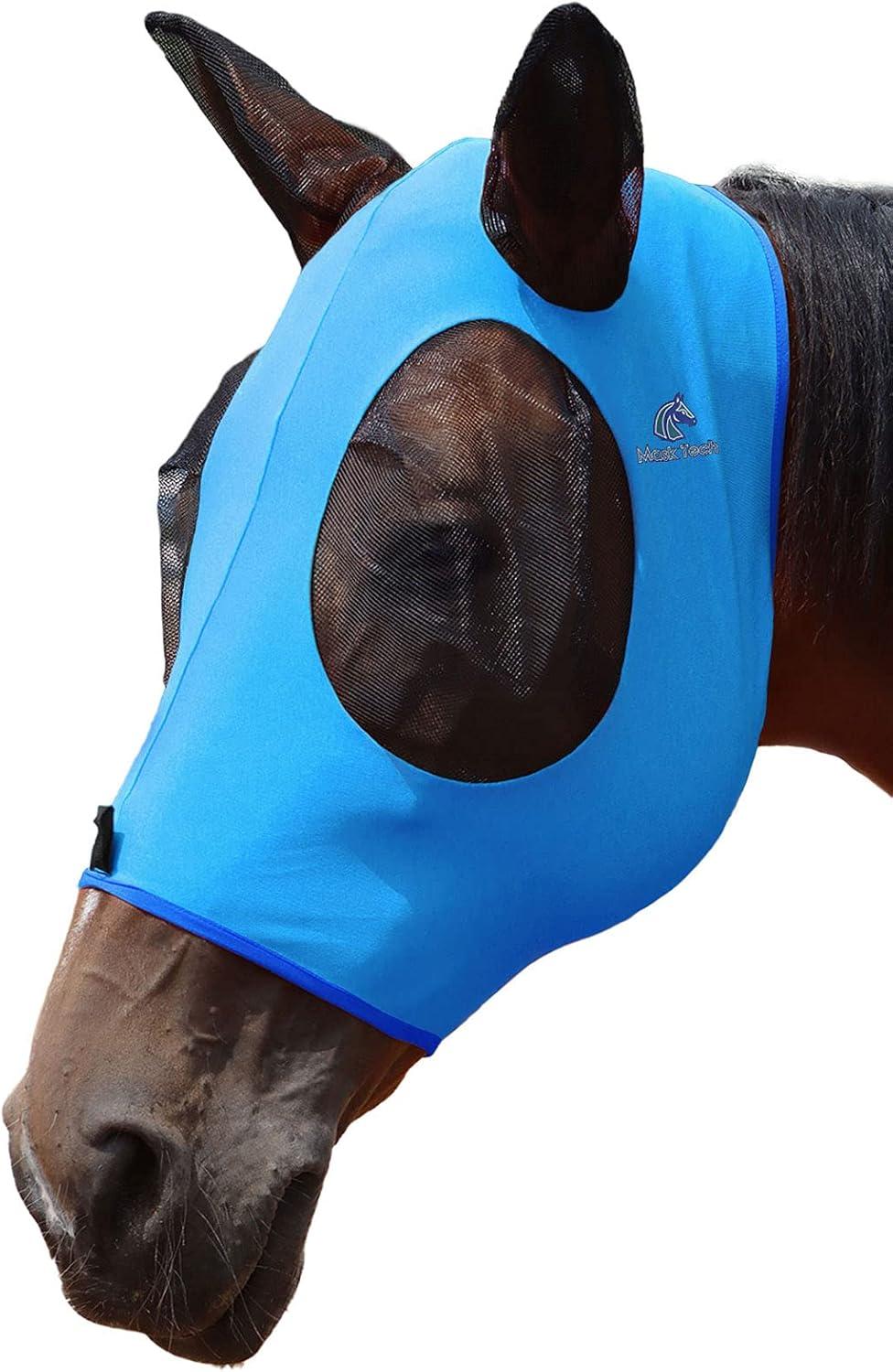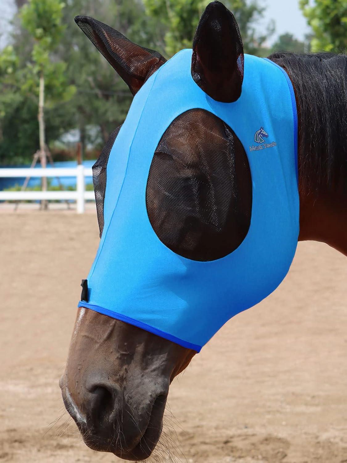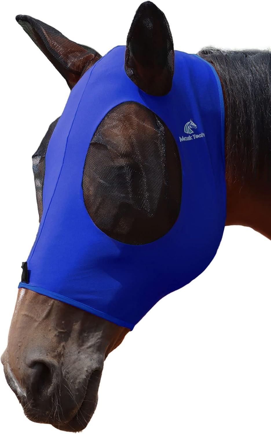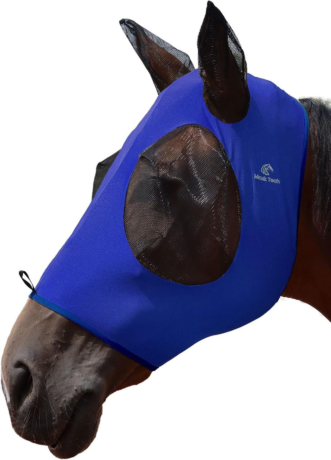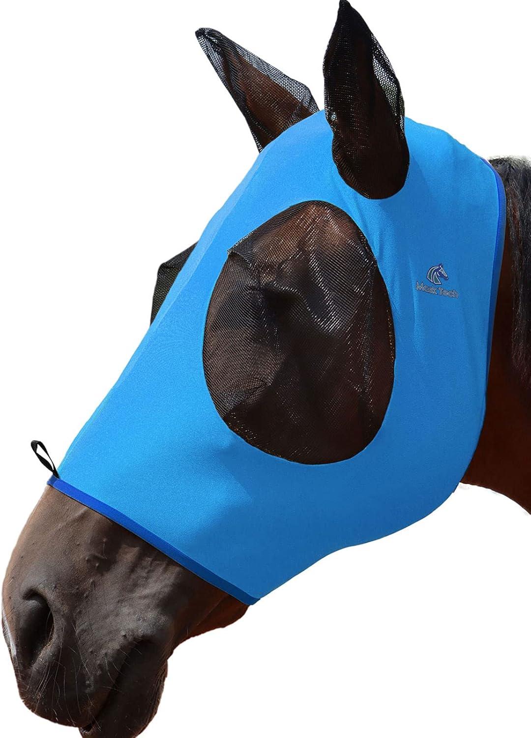 Mask Tech Horse Fly Mask Elasticity Breathable Fabric with UV Protection Soft Mesh for Horse Entwined Straps L(Deep Blue)