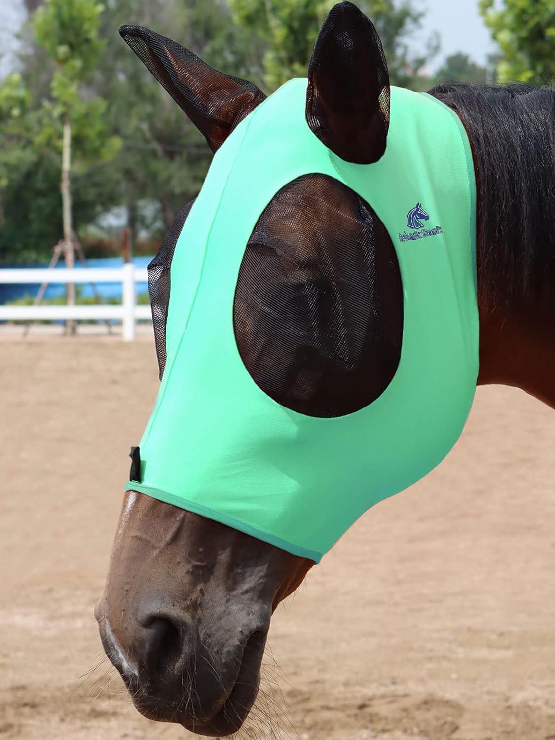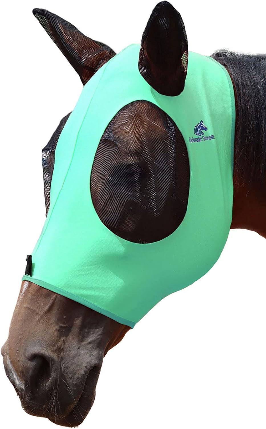 Mask Tech Horse Fly Mask Elasticity Breathable Fabric with UV Protection Soft Mesh for Horse Entwined Straps L(Summer Mint)