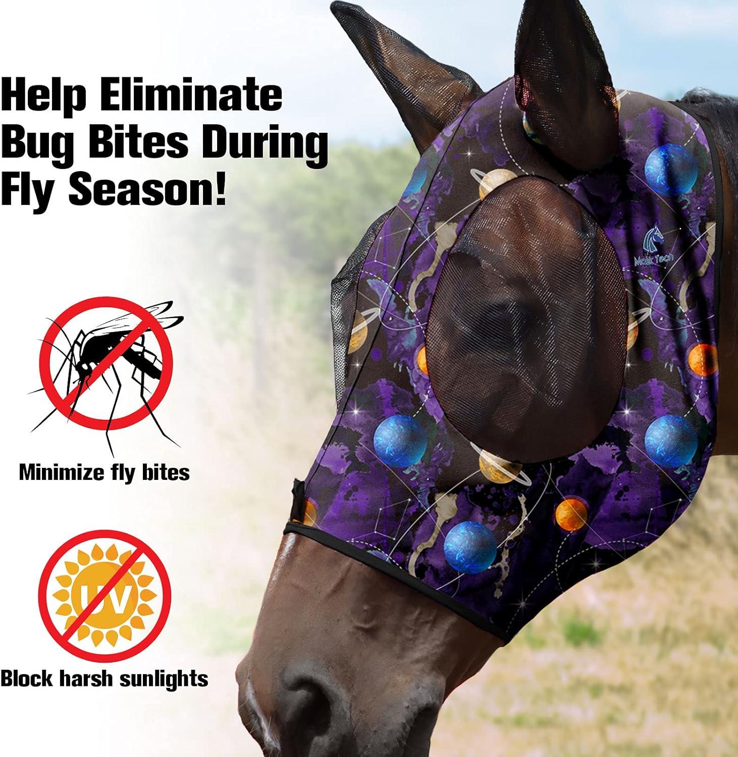 Mask Tech Horse Fly Mask Elasticity Breathable Fabric with UV Protection Soft Mesh for Horse Everlasting Cosmos L(Everlasting Cosmos)