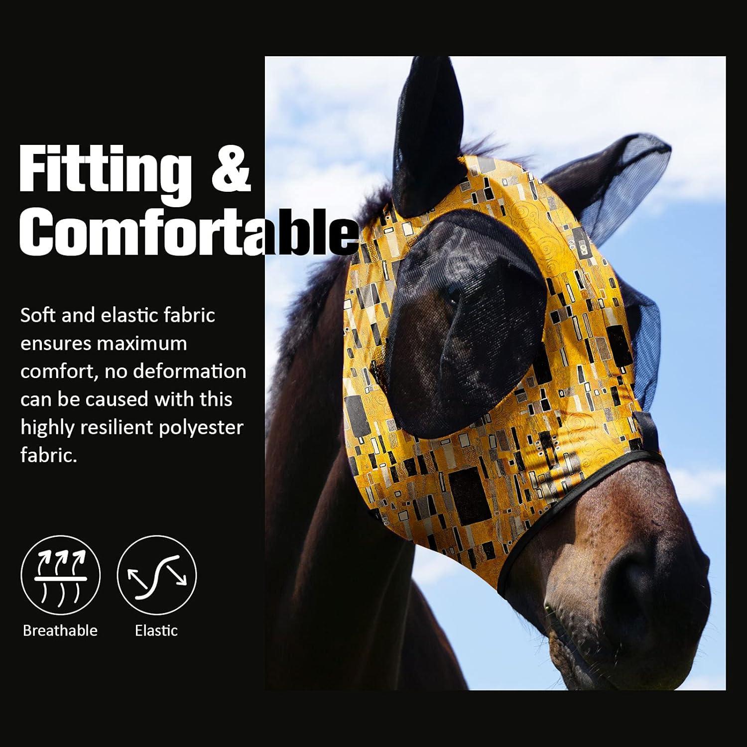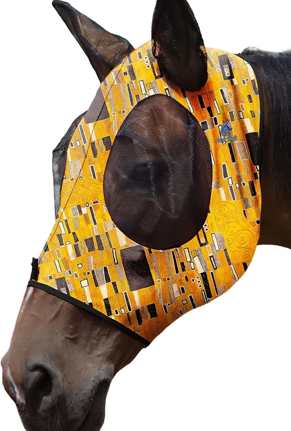 Mask Tech Horse Fly Mask Elasticity Breathable Fabric with UV Protection Soft Mesh for Horse Everlasting Cosmos L(Golden Matrix)
