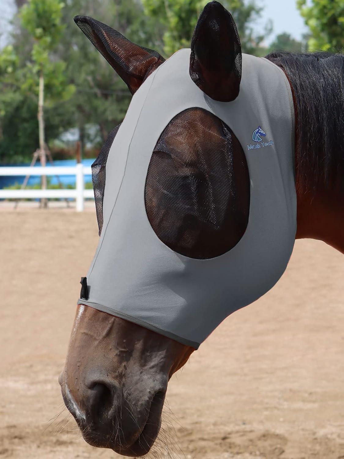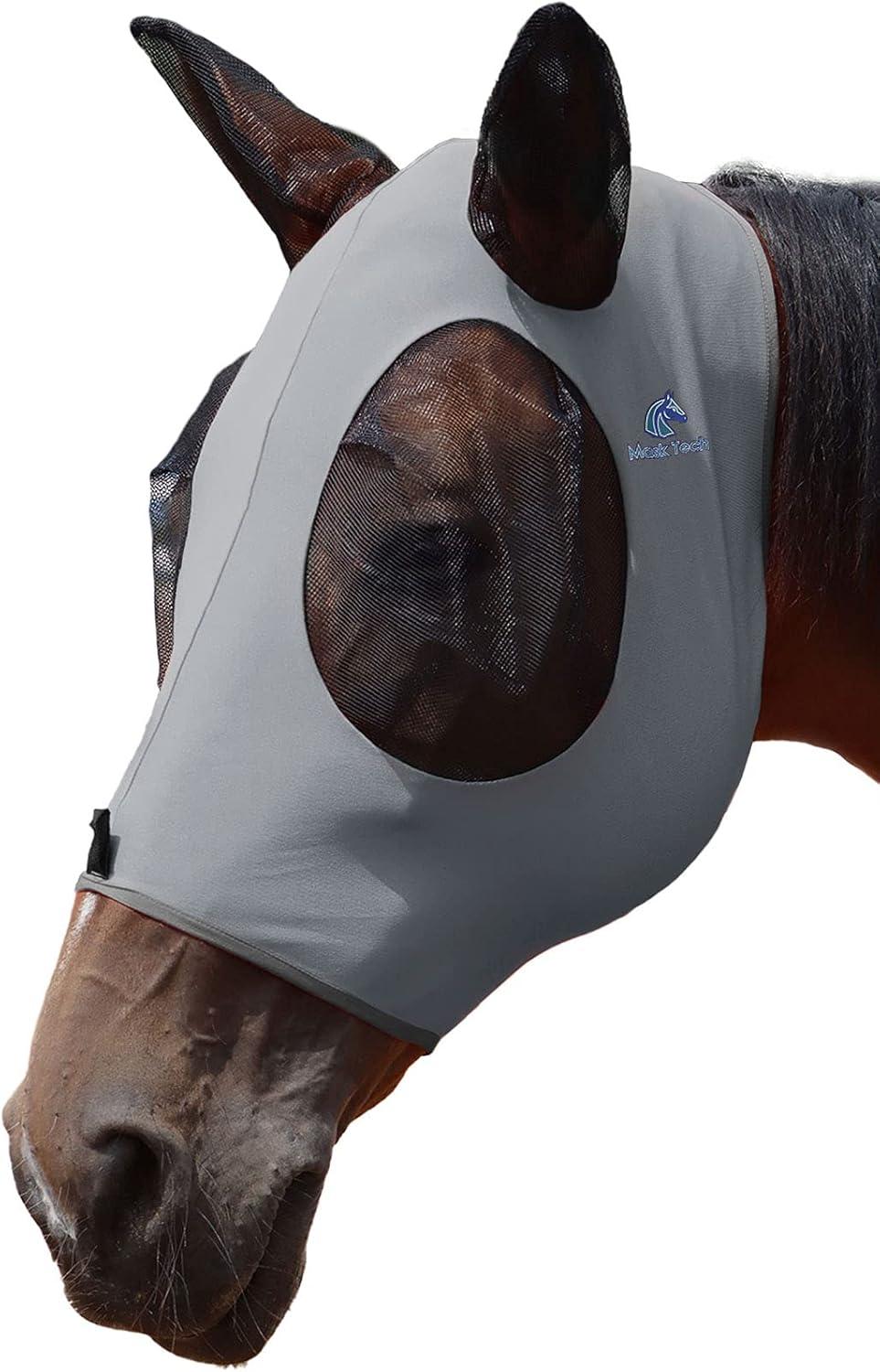 Mask Tech Horse Fly Mask Elasticity Breathable Fabric with UV Protection Soft Mesh for Horse Entwined Straps L(Grey)