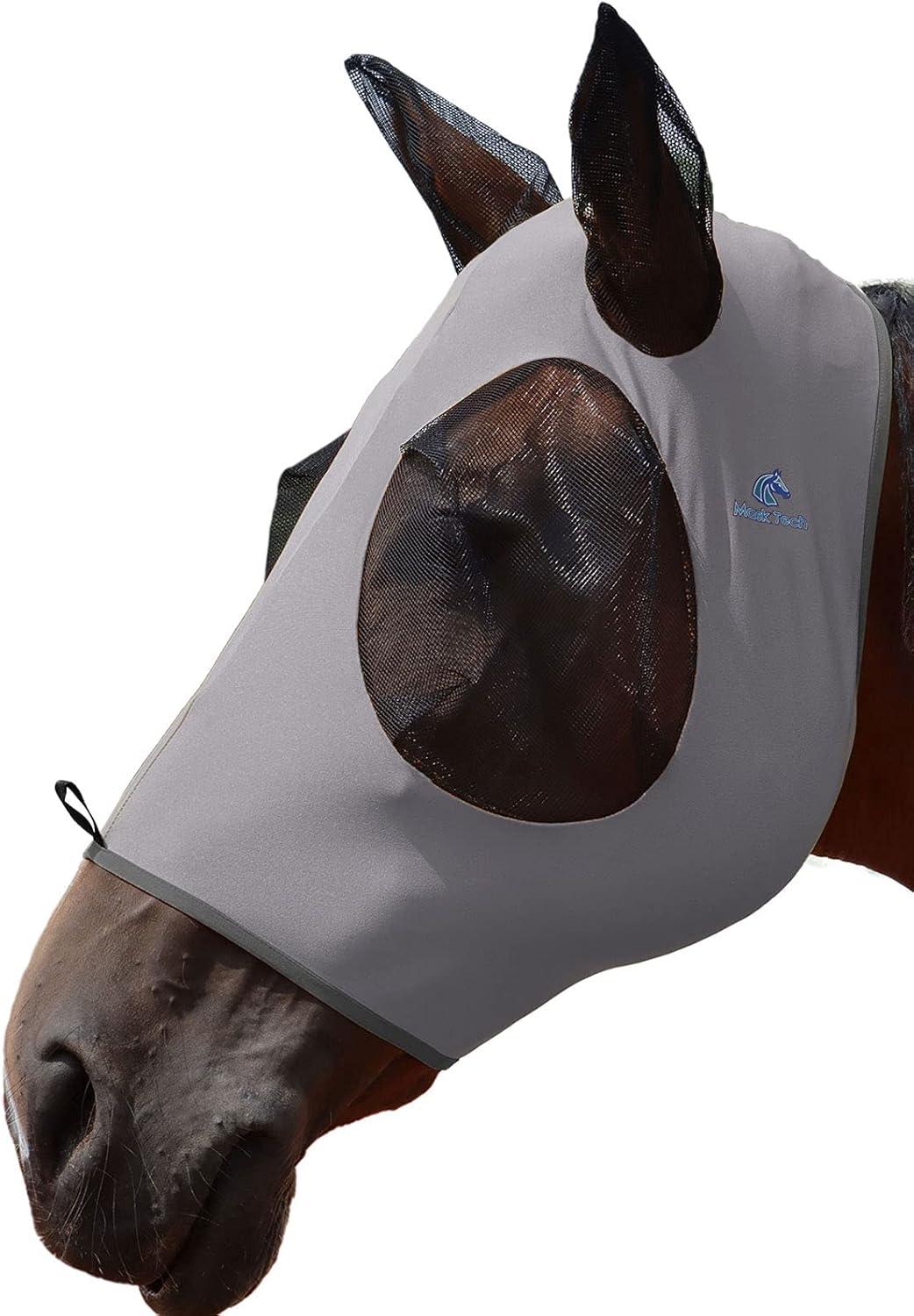 Mask Tech Horse Fly Mask Elasticity Breathable Fabric with UV Protection Soft Mesh for Horse Everlasting Cosmos L(Grey)