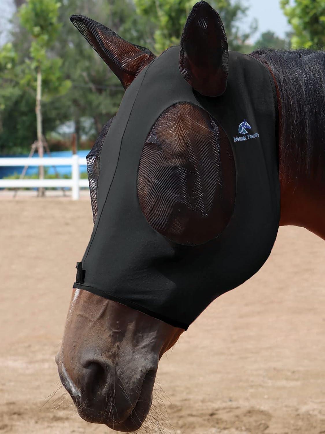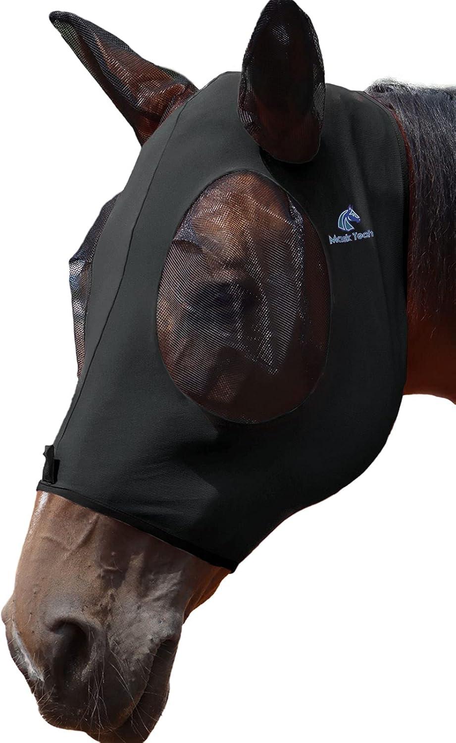 Mask Tech Horse Fly Mask Elasticity Breathable Fabric with UV Protection Soft Mesh for Horse Entwined Straps L(Mars Black)
