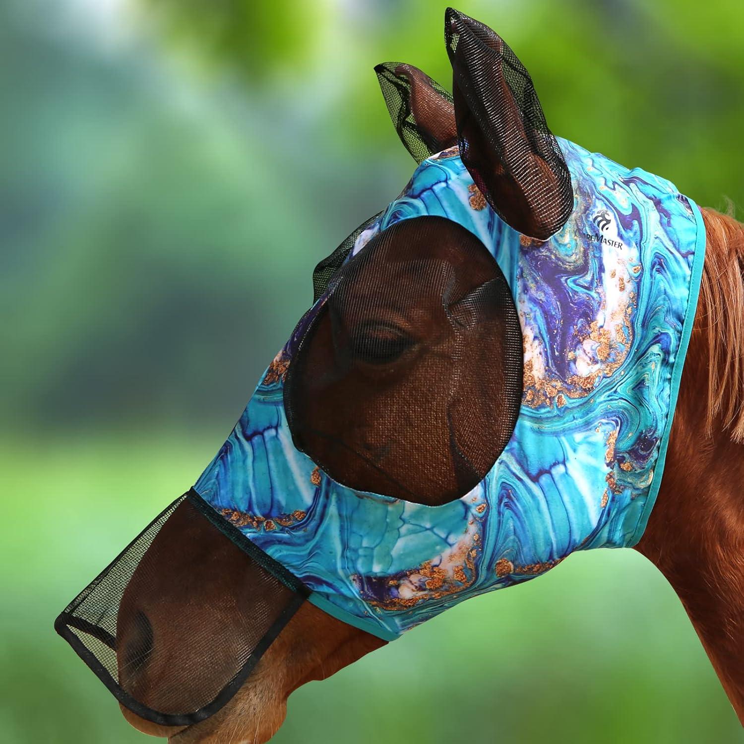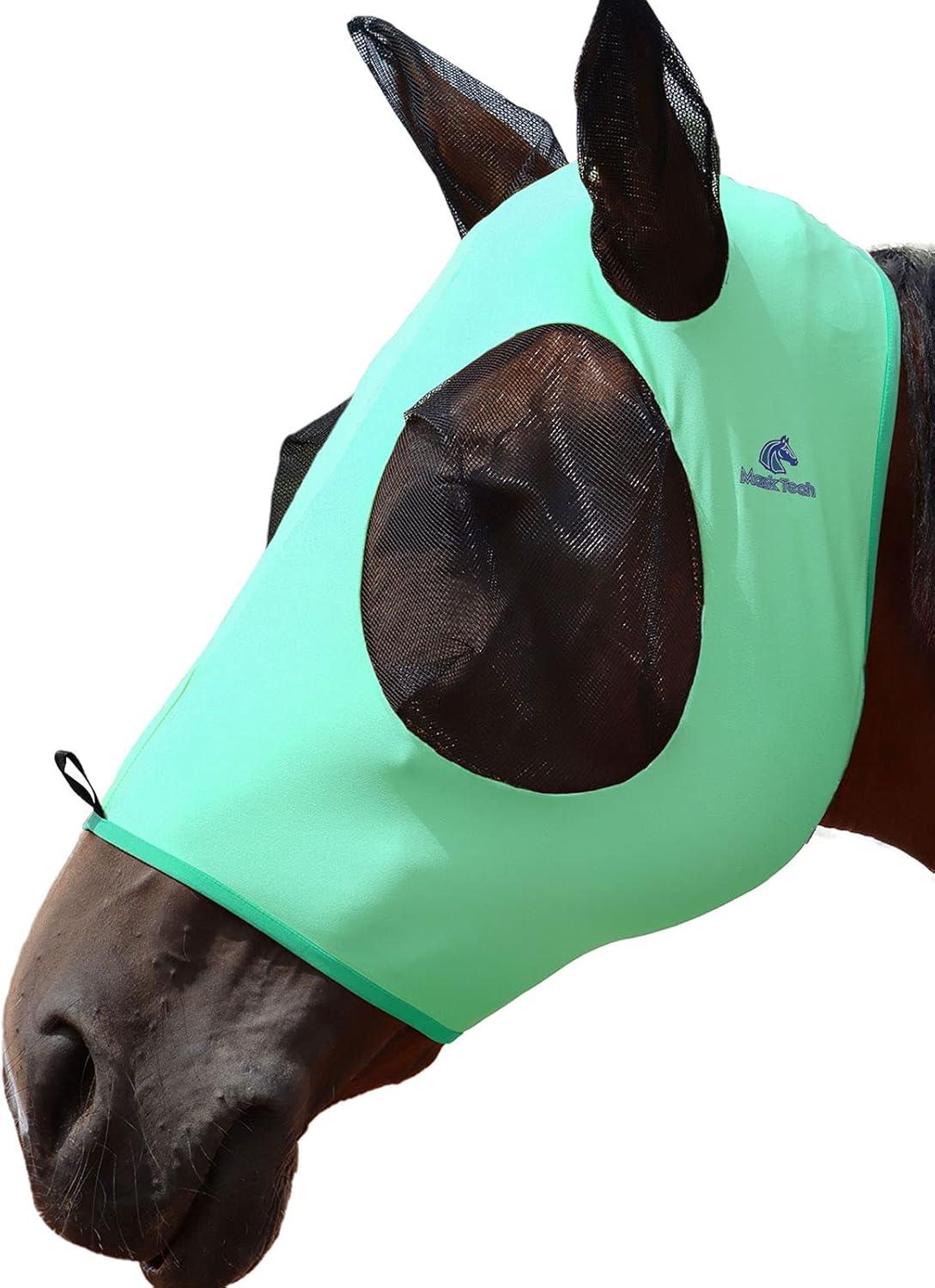 Mask Tech Horse Fly Mask Elasticity Breathable Fabric with UV Protection Soft Mesh for Horse Everlasting Cosmos L(Summer Mint)