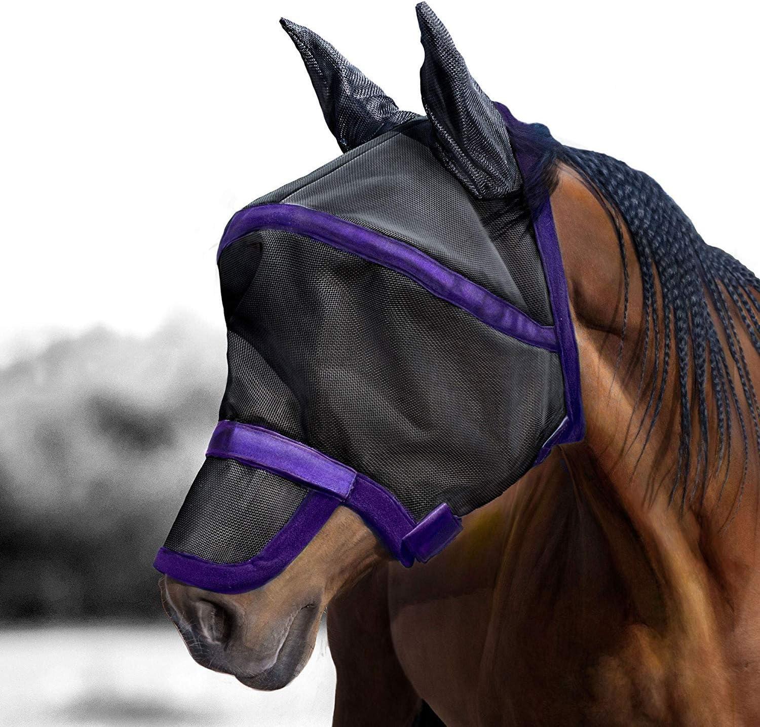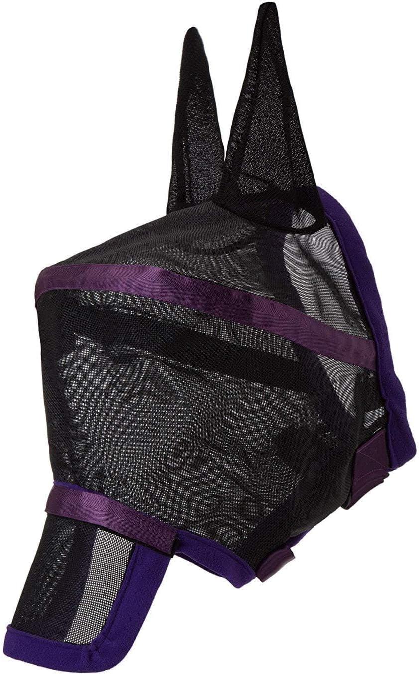 Harrison Howard Maskology Supreme Horse Fly Mask Stellar UV Protection with Detachable Nose Cover Well-Received 2-in-1 Mask Purple L Full Size(Black)