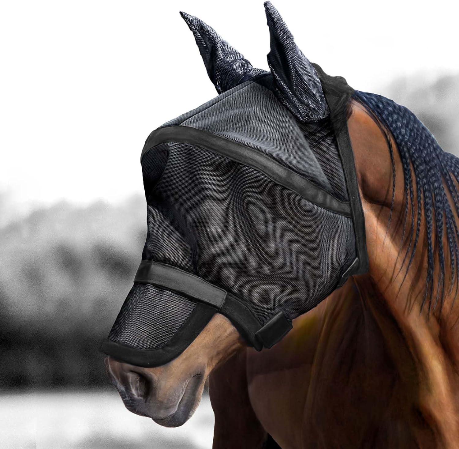 Harrison Howard Maskology Supreme Horse Fly Mask Stellar UV Protection with Detachable Nose Cover Well-Received 2-in-1 Mask Fuchsia Black L Full Size(Black)