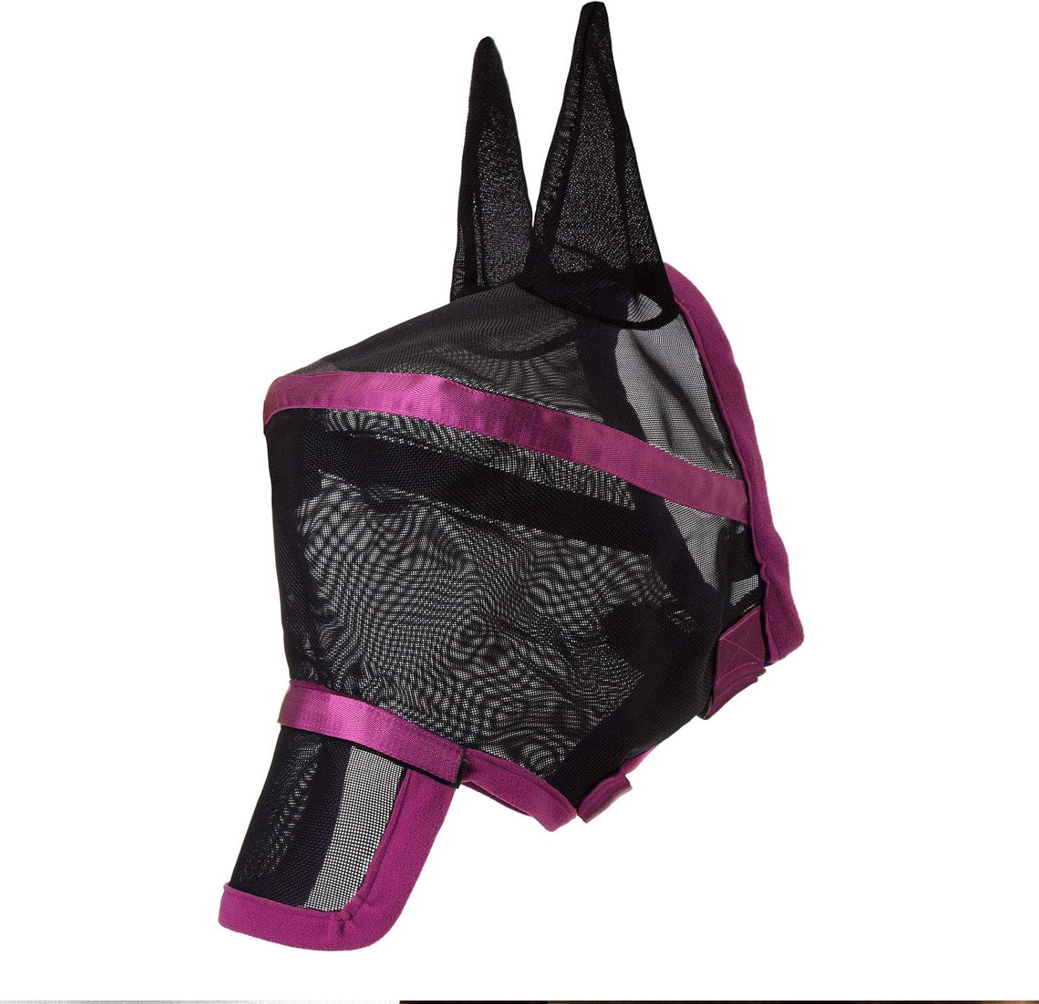 Harrison Howard Maskology Supreme Horse Fly Mask Stellar UV Protection with Detachable Nose Cover Well-Received 2-in-1 Mask Fuchsia Black L Full Size(Purple)