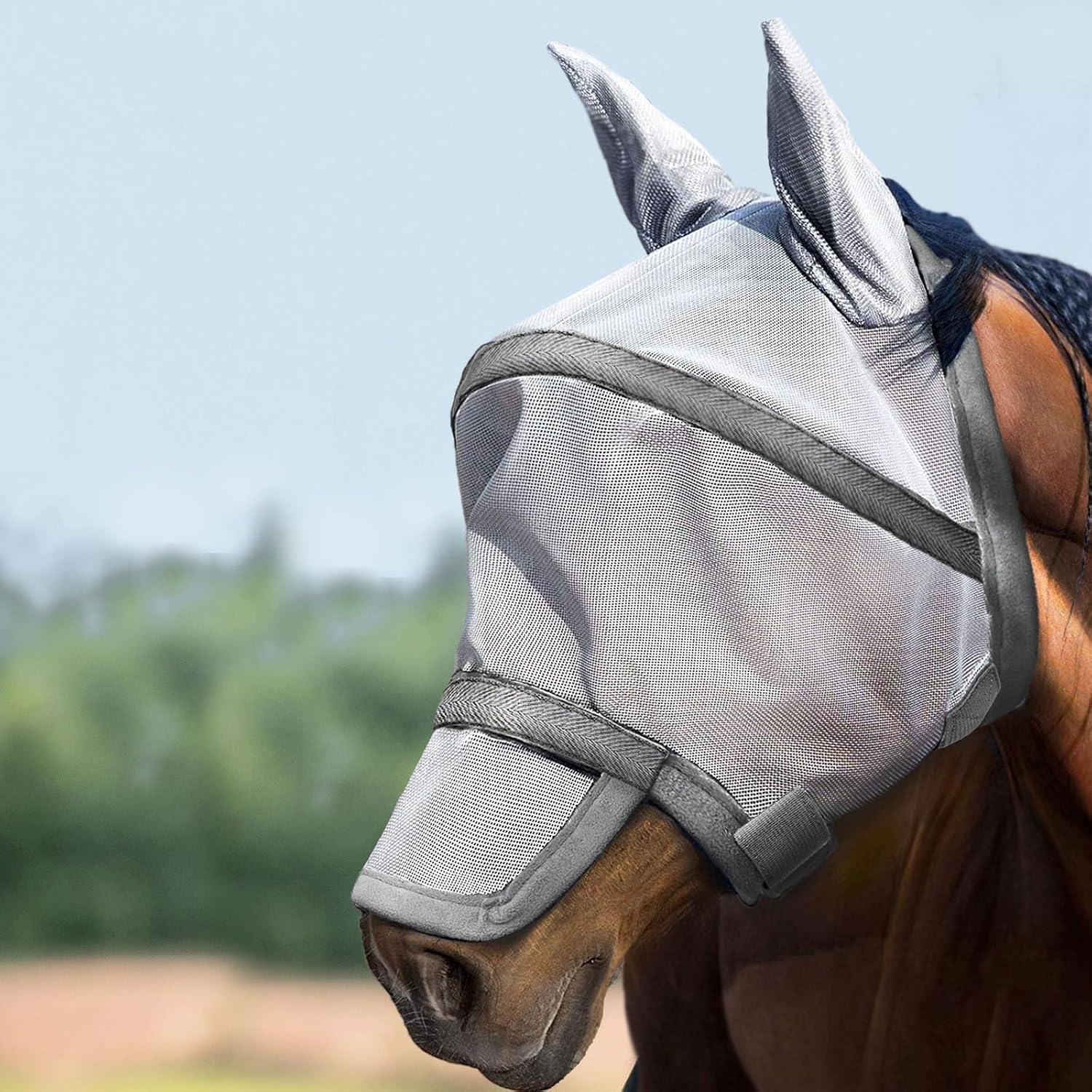 Harrison Howard Maskology Supreme Nylon Framework Micro-Woven Material UV-Proof Horse Fly Mask Grey-Large(Grey)