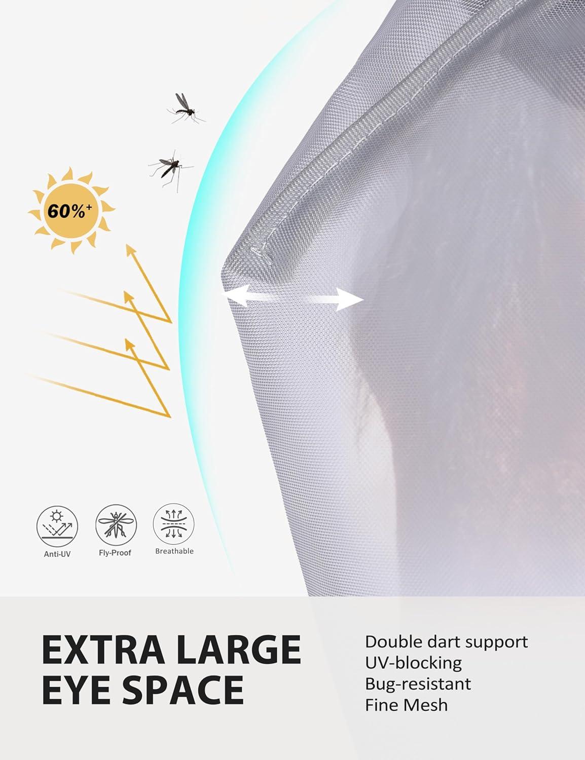 Harrison Howard Horse Fly Mask UV Protective Fine Mesh with Extra Wool Soft Touch on Skin Fly and UV Protection Moonlight Silver S(Aquamarine)