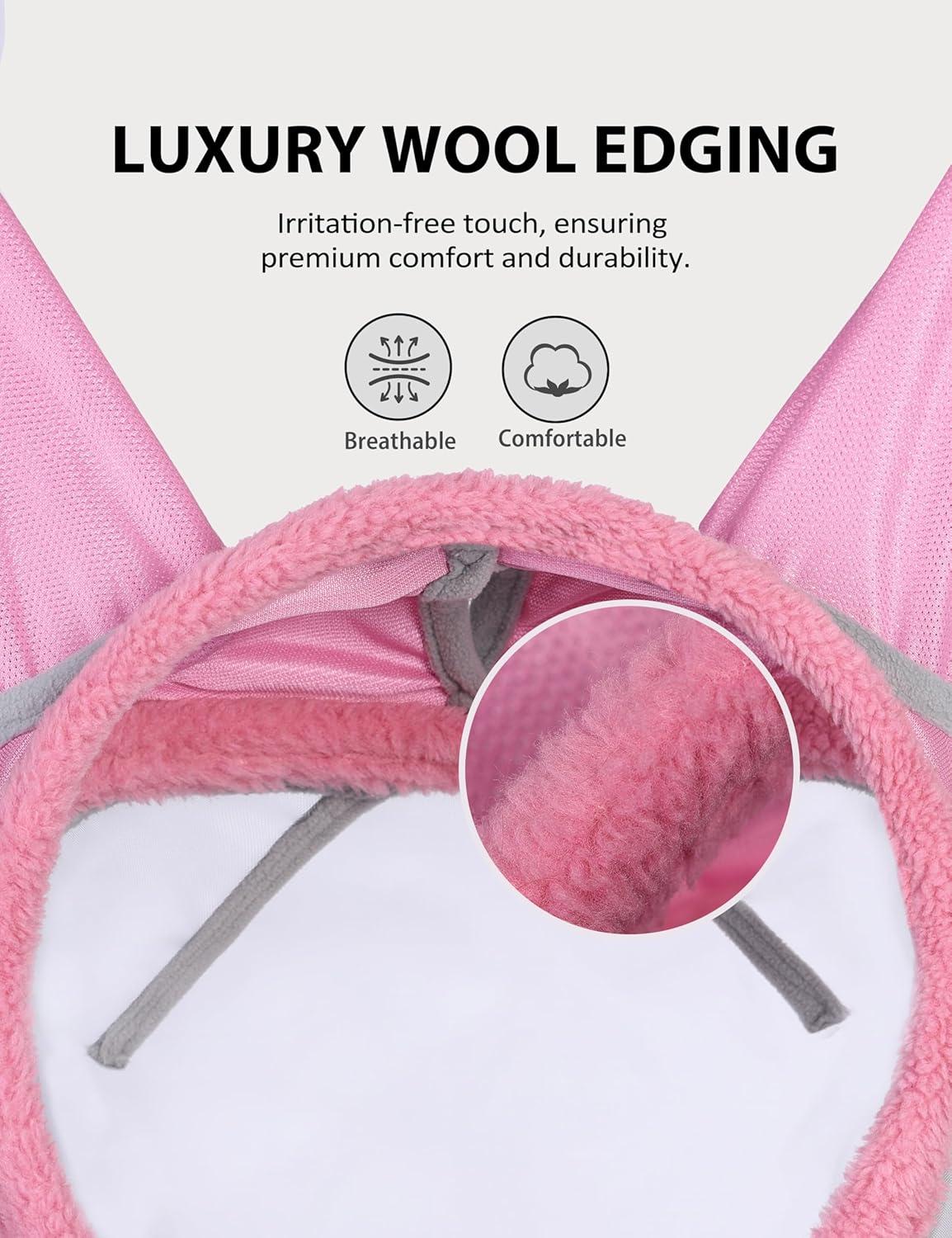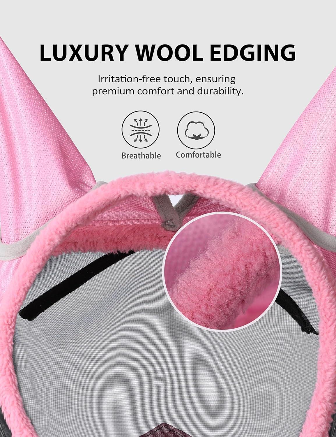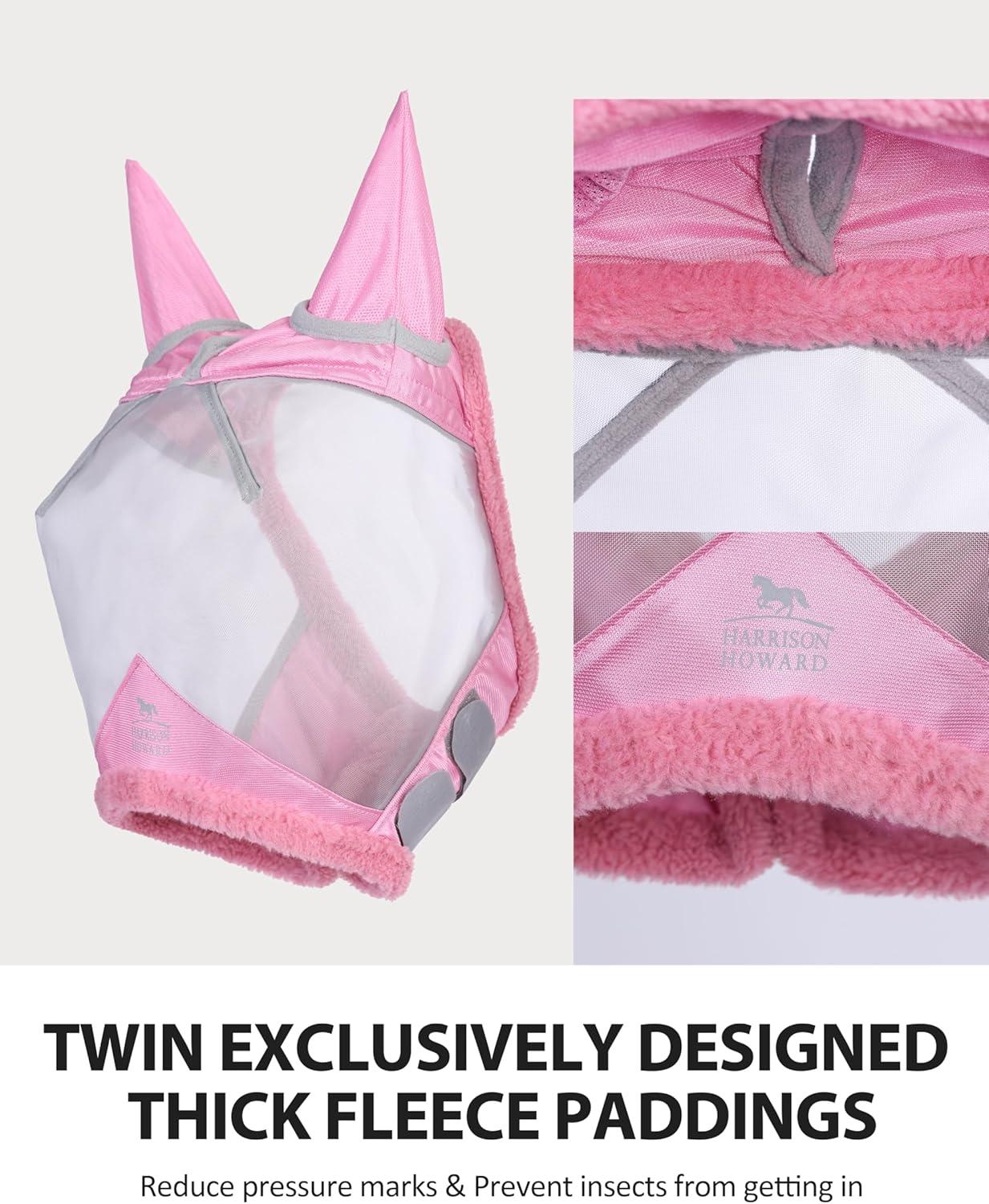 Harrison Howard CareMaster Horse Fly Mask UV Protective Fine Mesh with Extra Wool Soft Touch on Skin Champion Blue L(Light Pink)