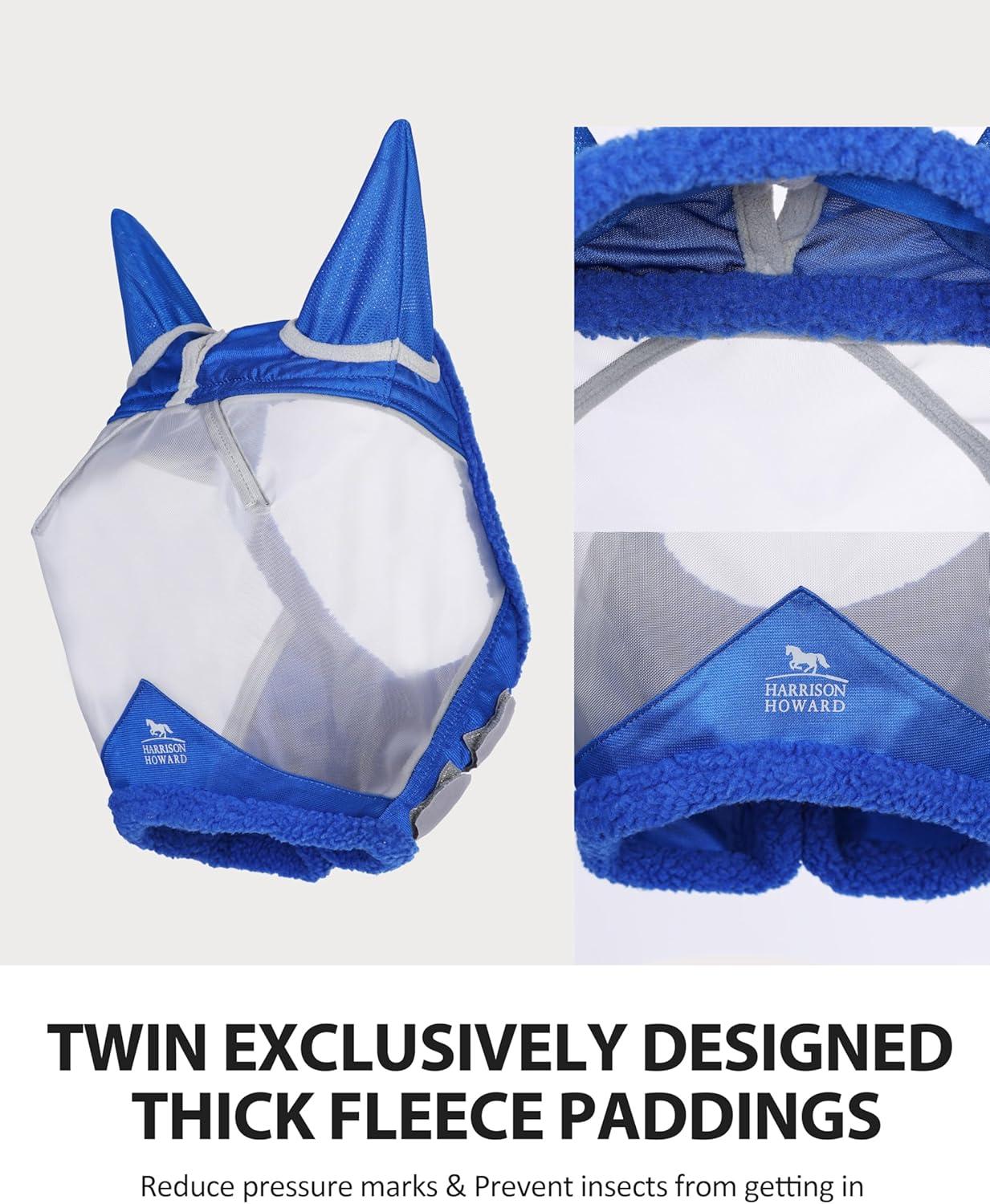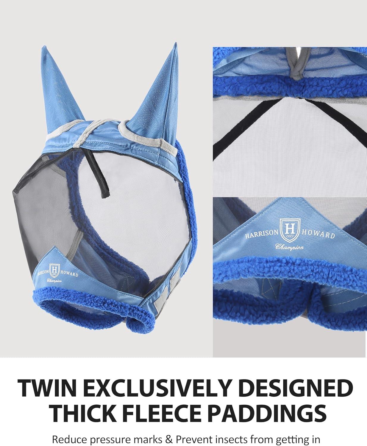 Harrison Howard CareMaster Horse Fly Mask UV Protective Fine Mesh with Extra Wool Soft Touch on Skin Champion Blue M(Champion Blue)
