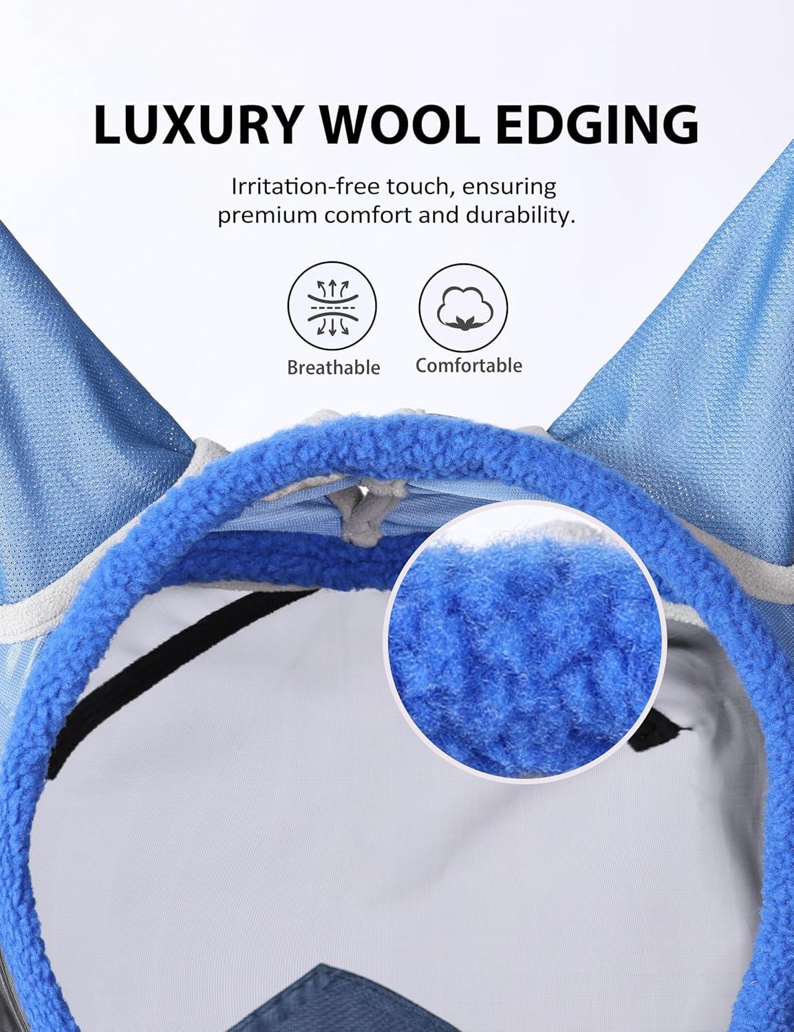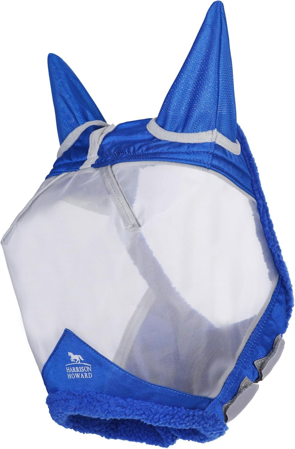 Harrison Howard CareMaster Horse Fly Mask UV Protective Fine Mesh with Extra Wool Soft Touch on Skin Champion Blue L(Champion Blue)